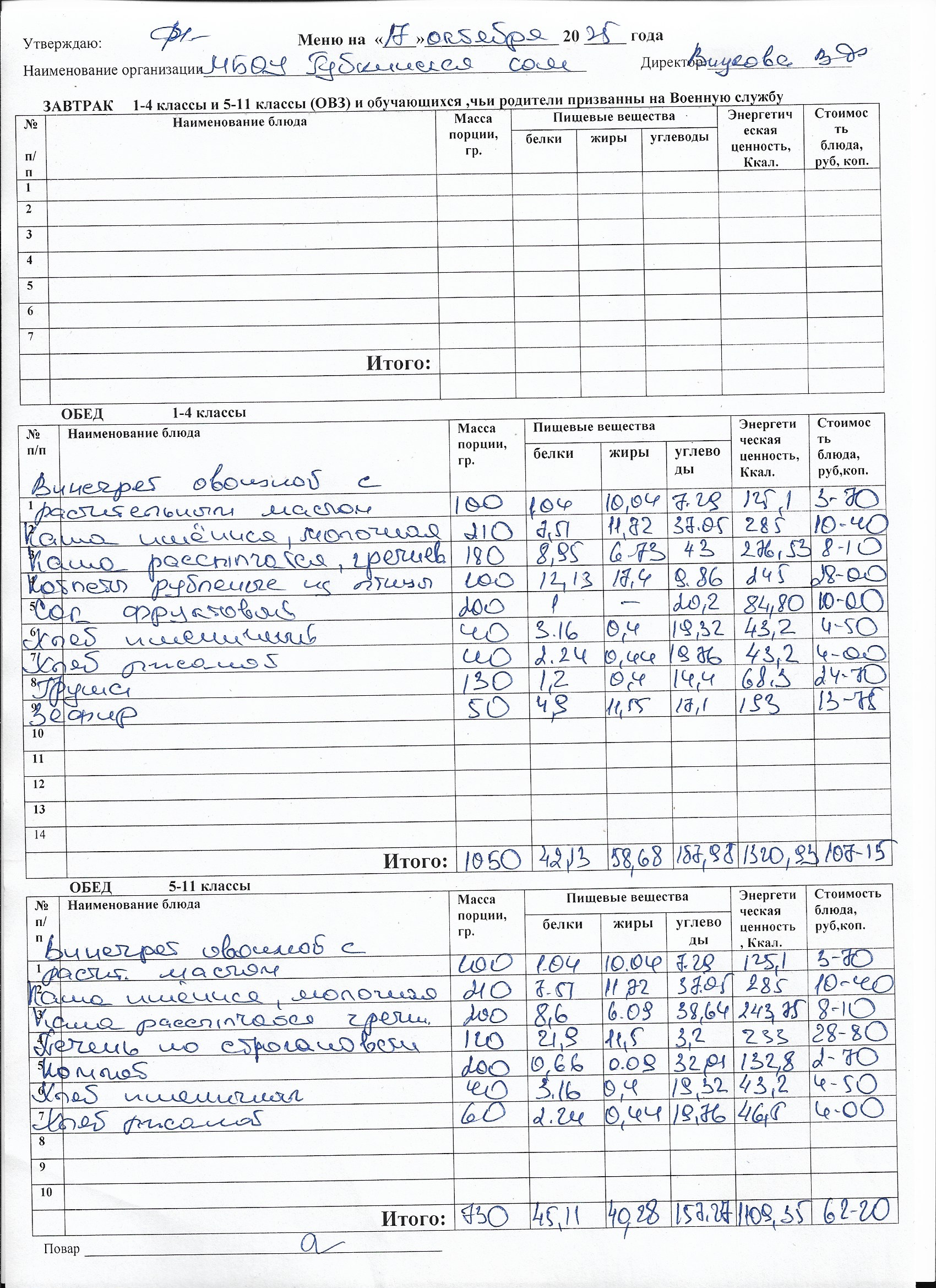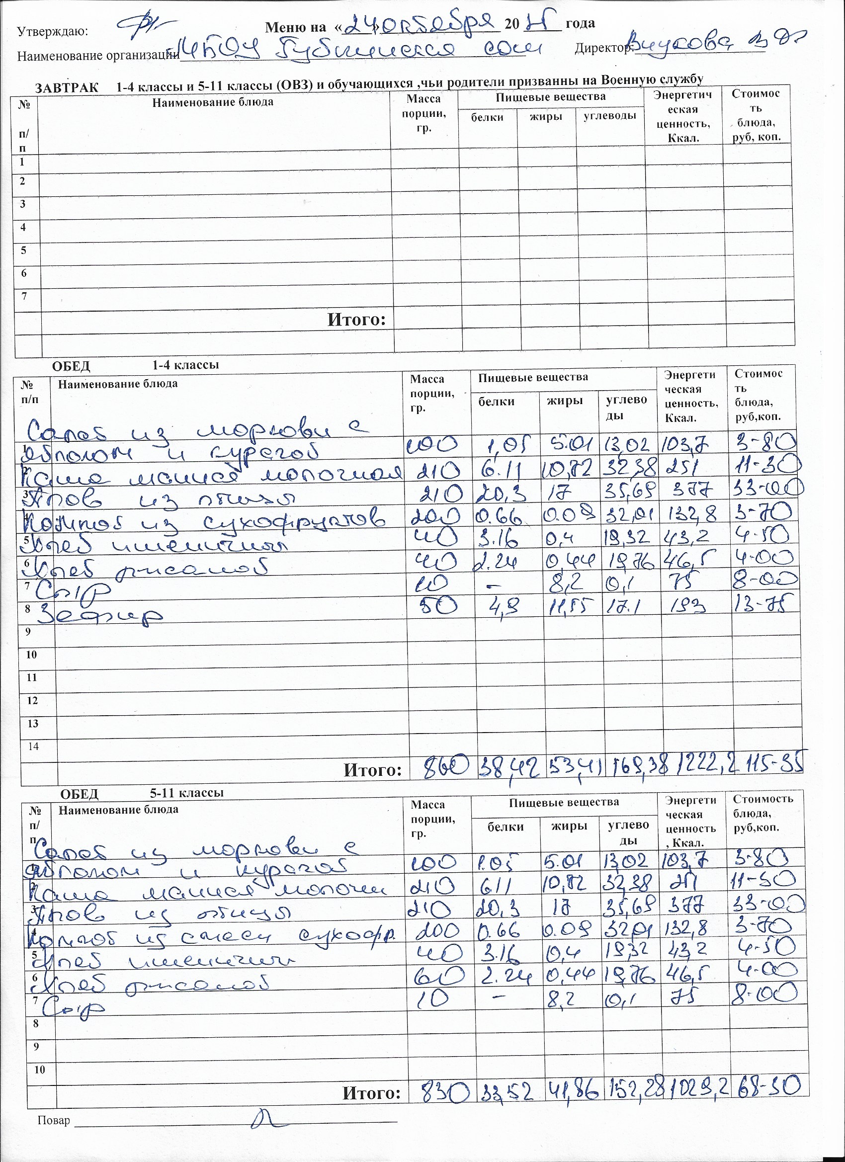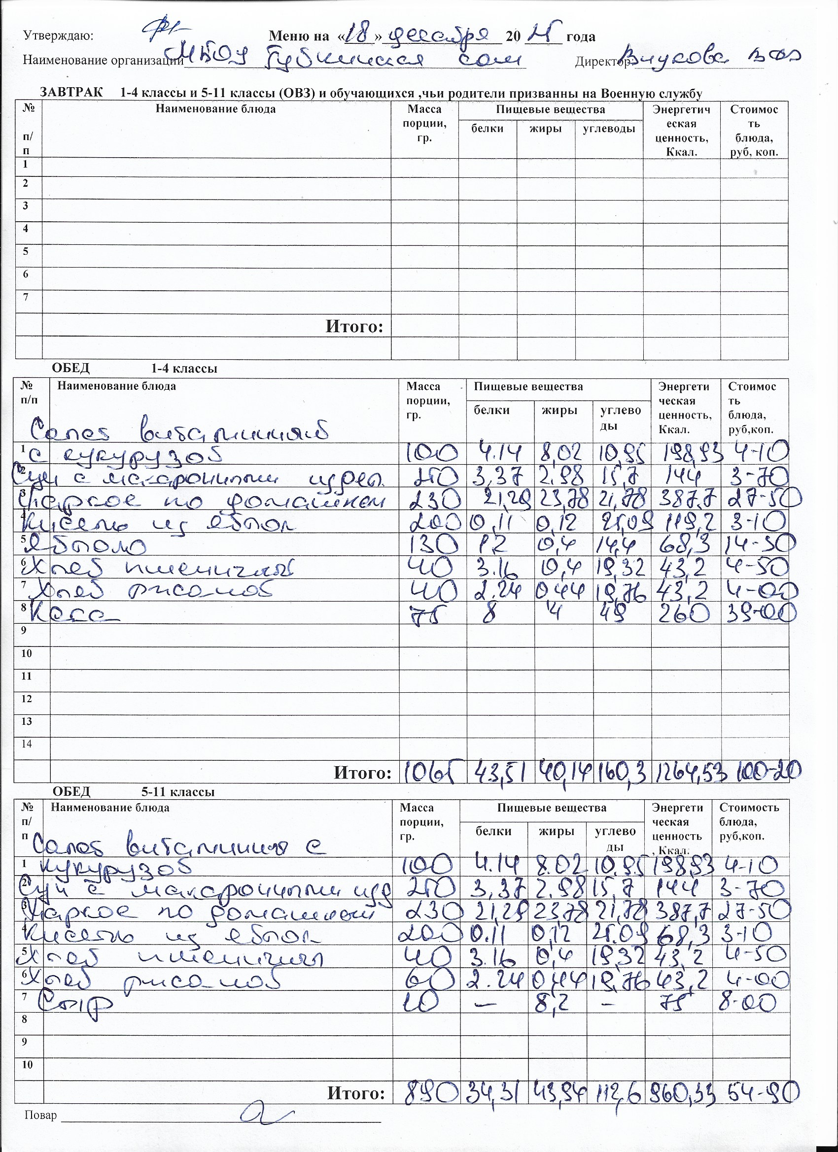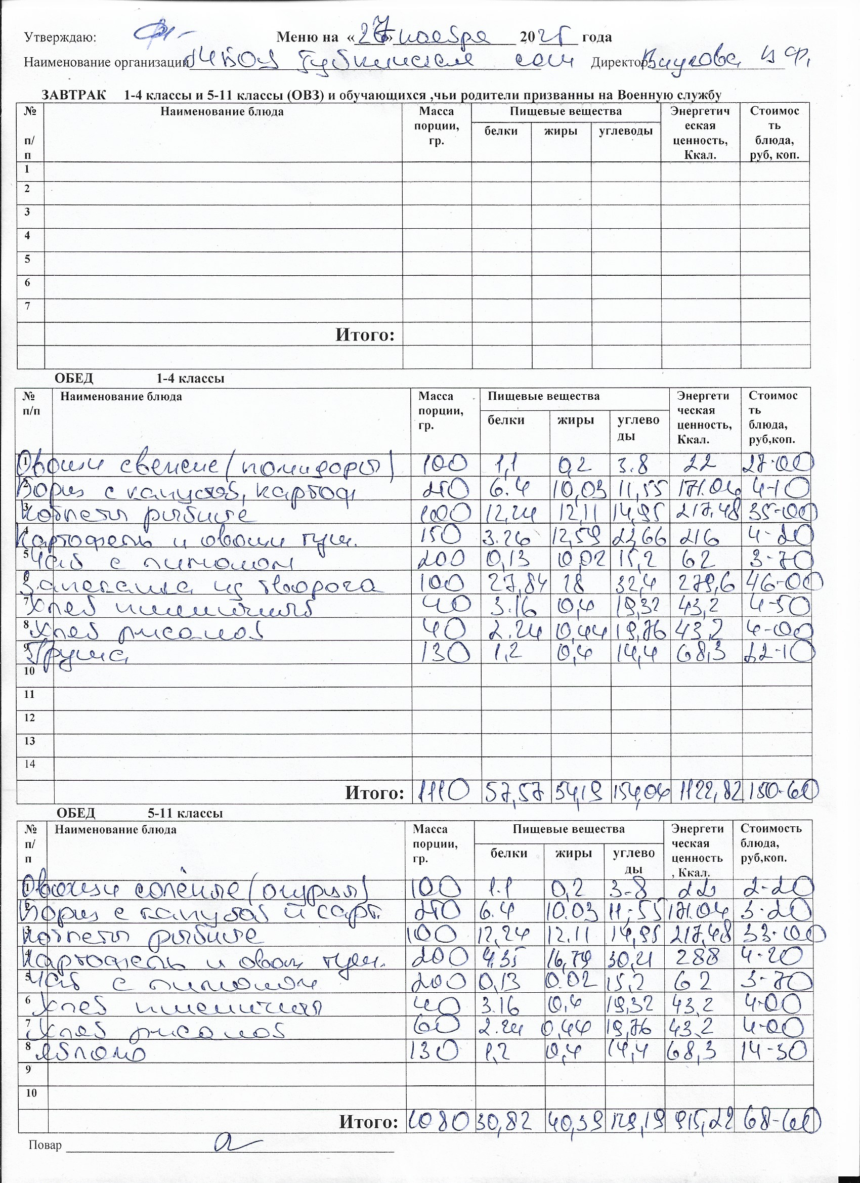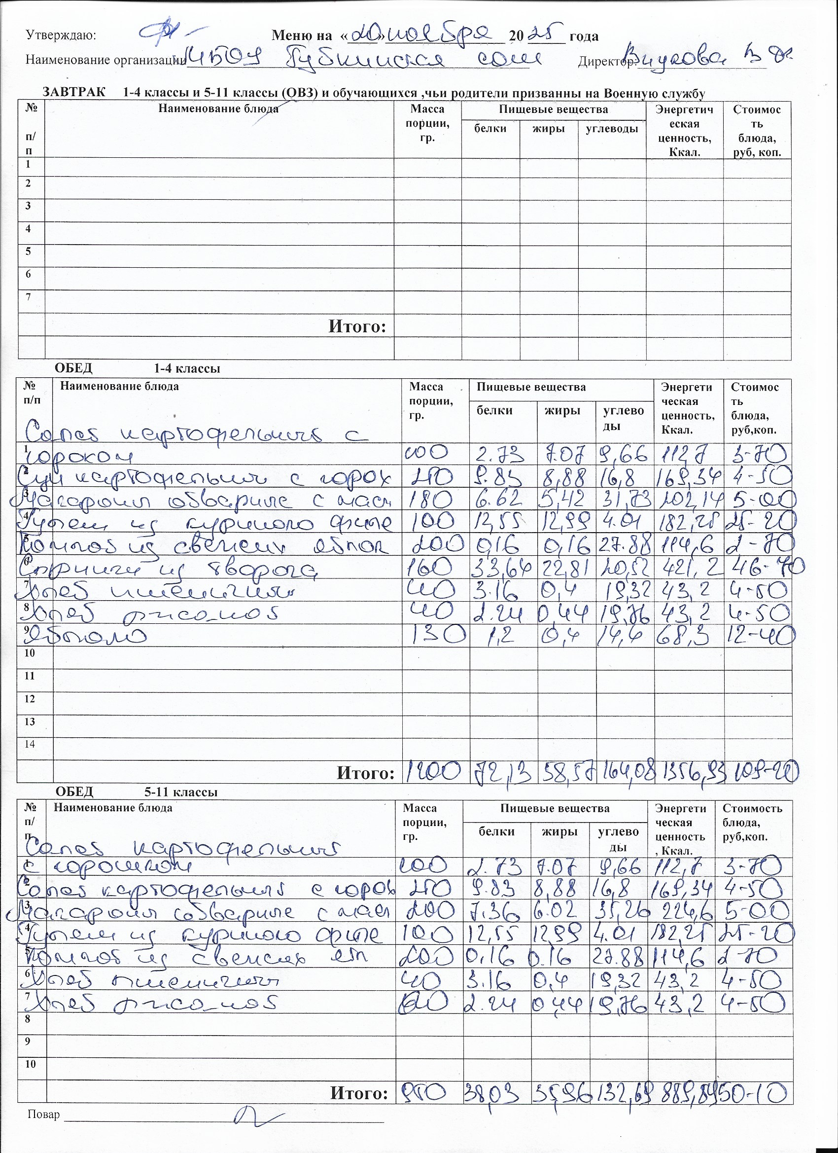 Меню на каждый день