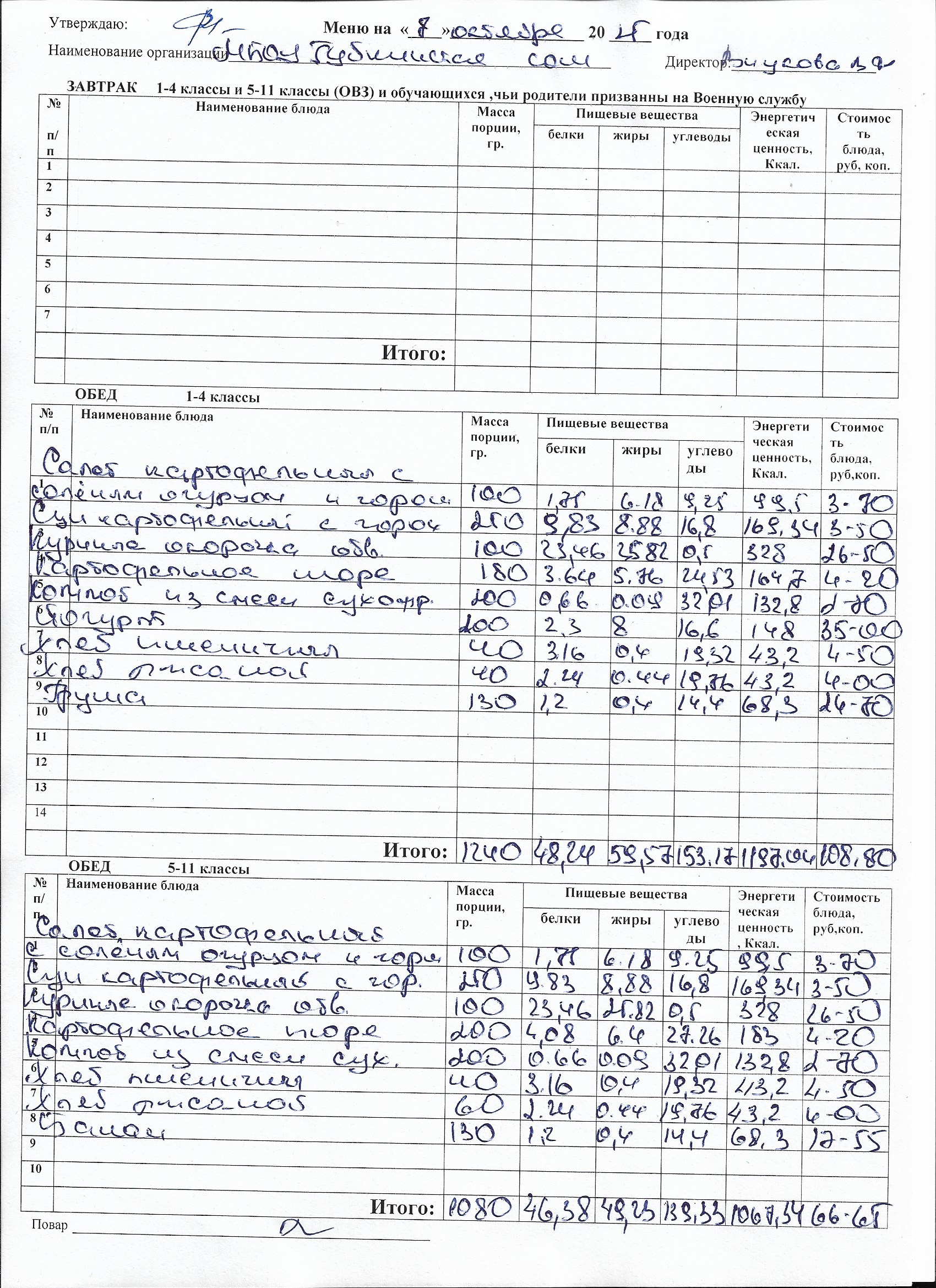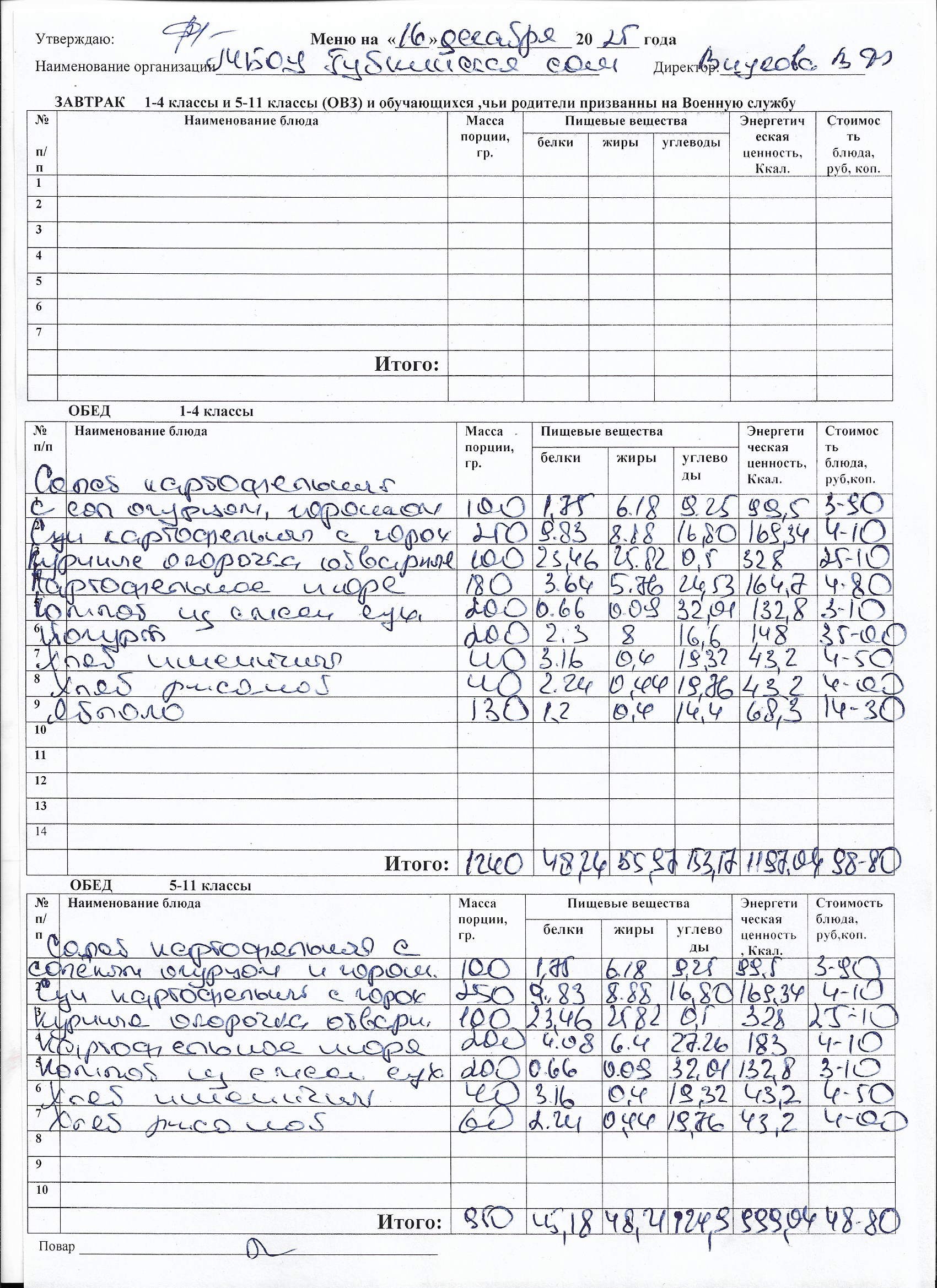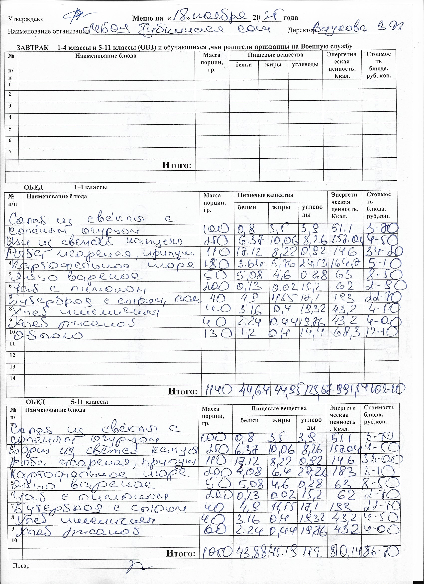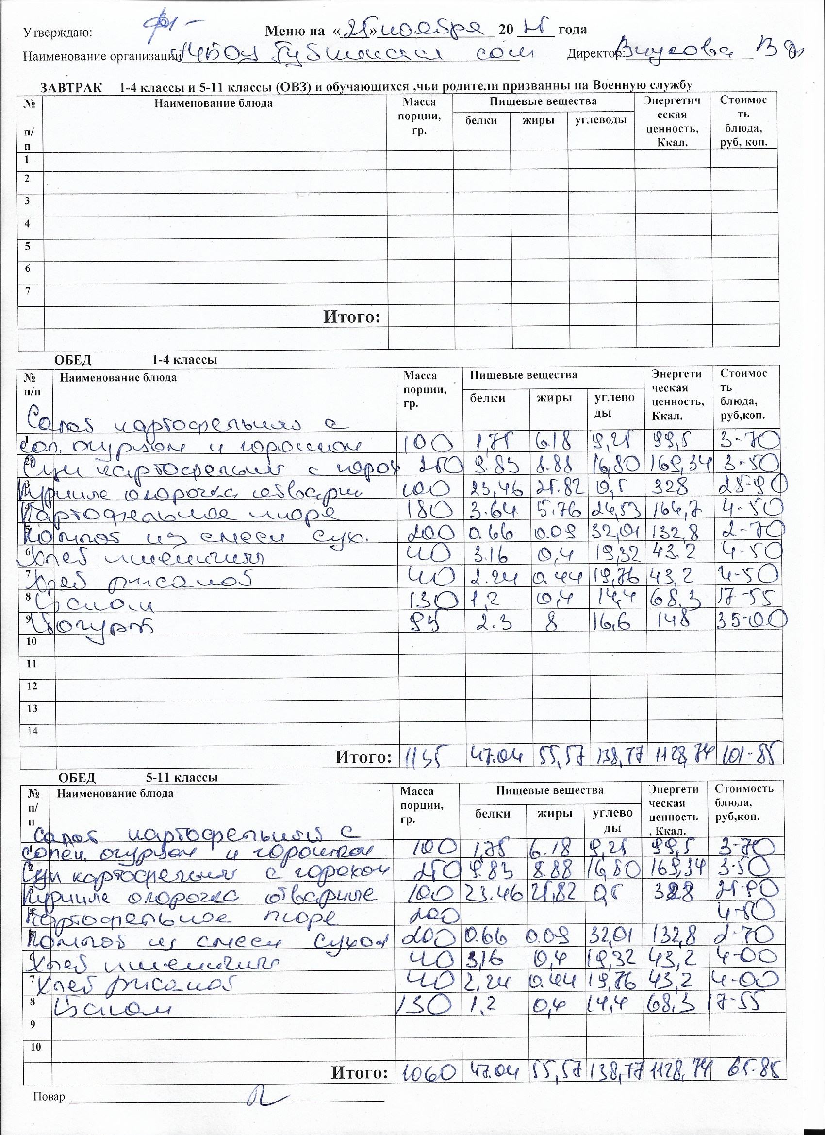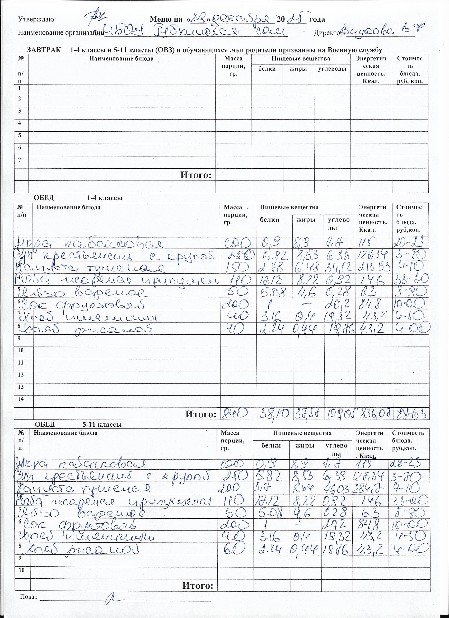 Меню на каждый день