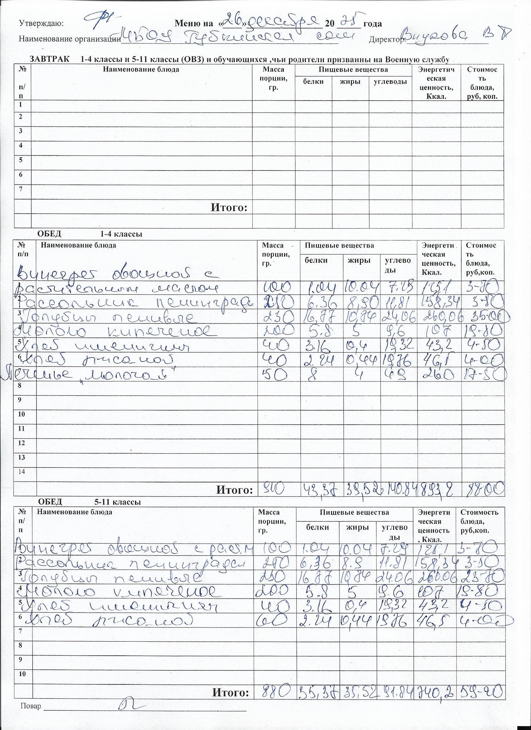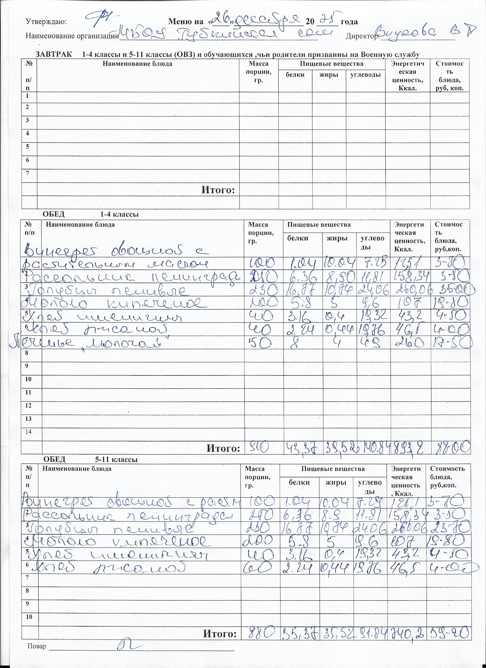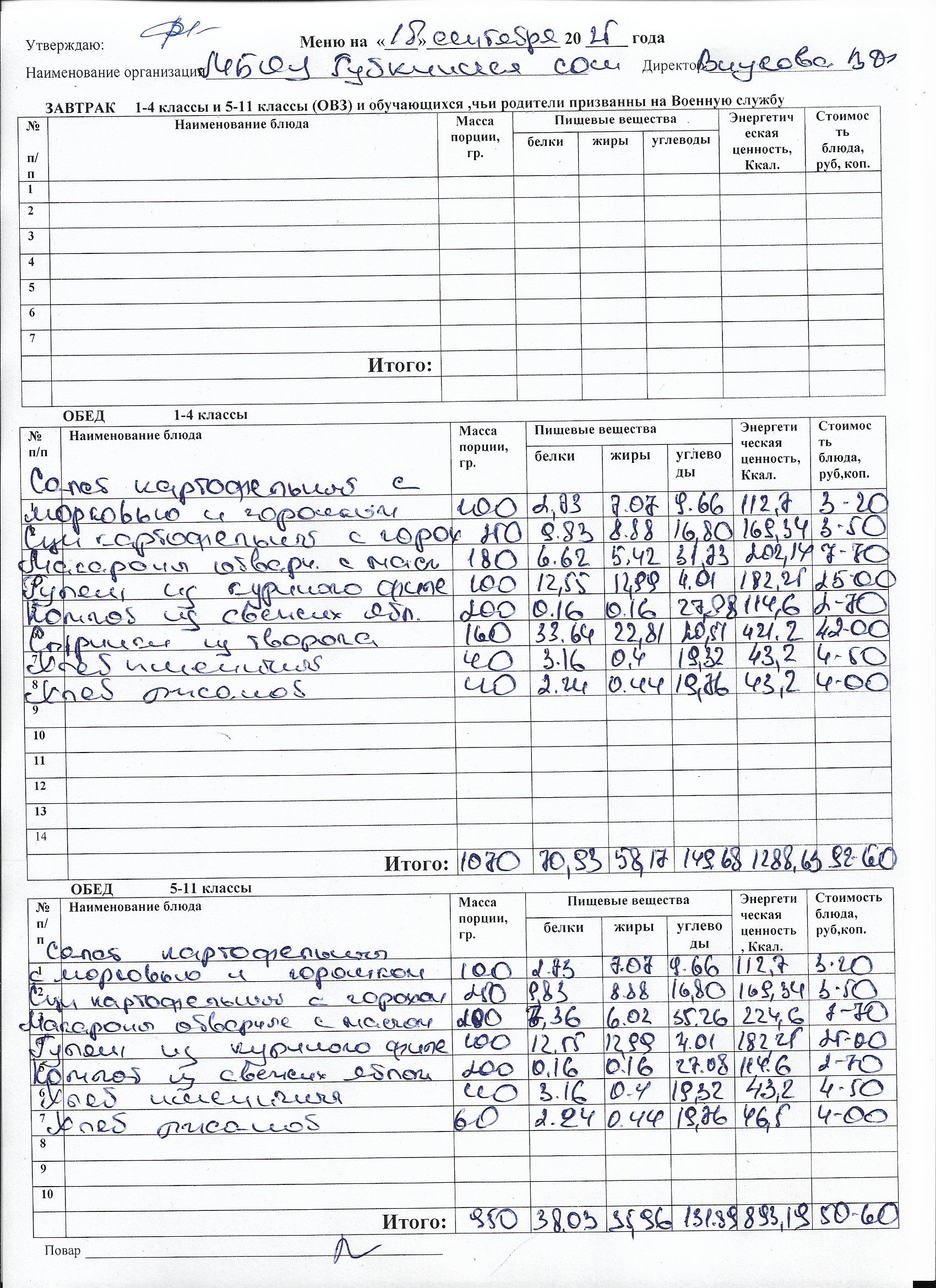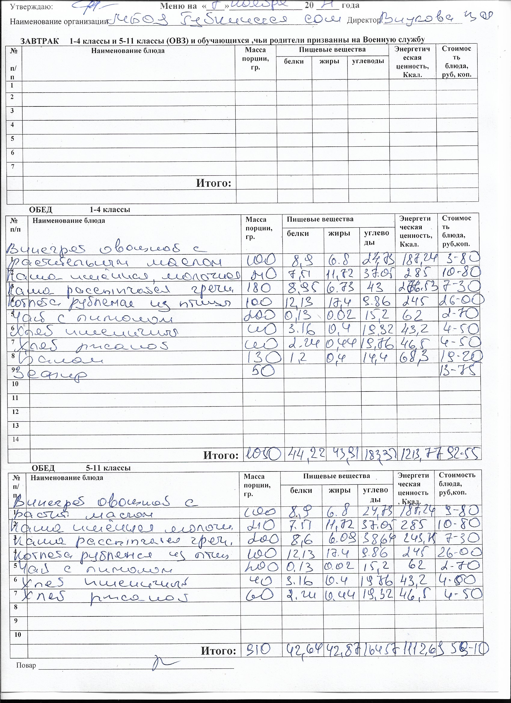 Меню на каждый день