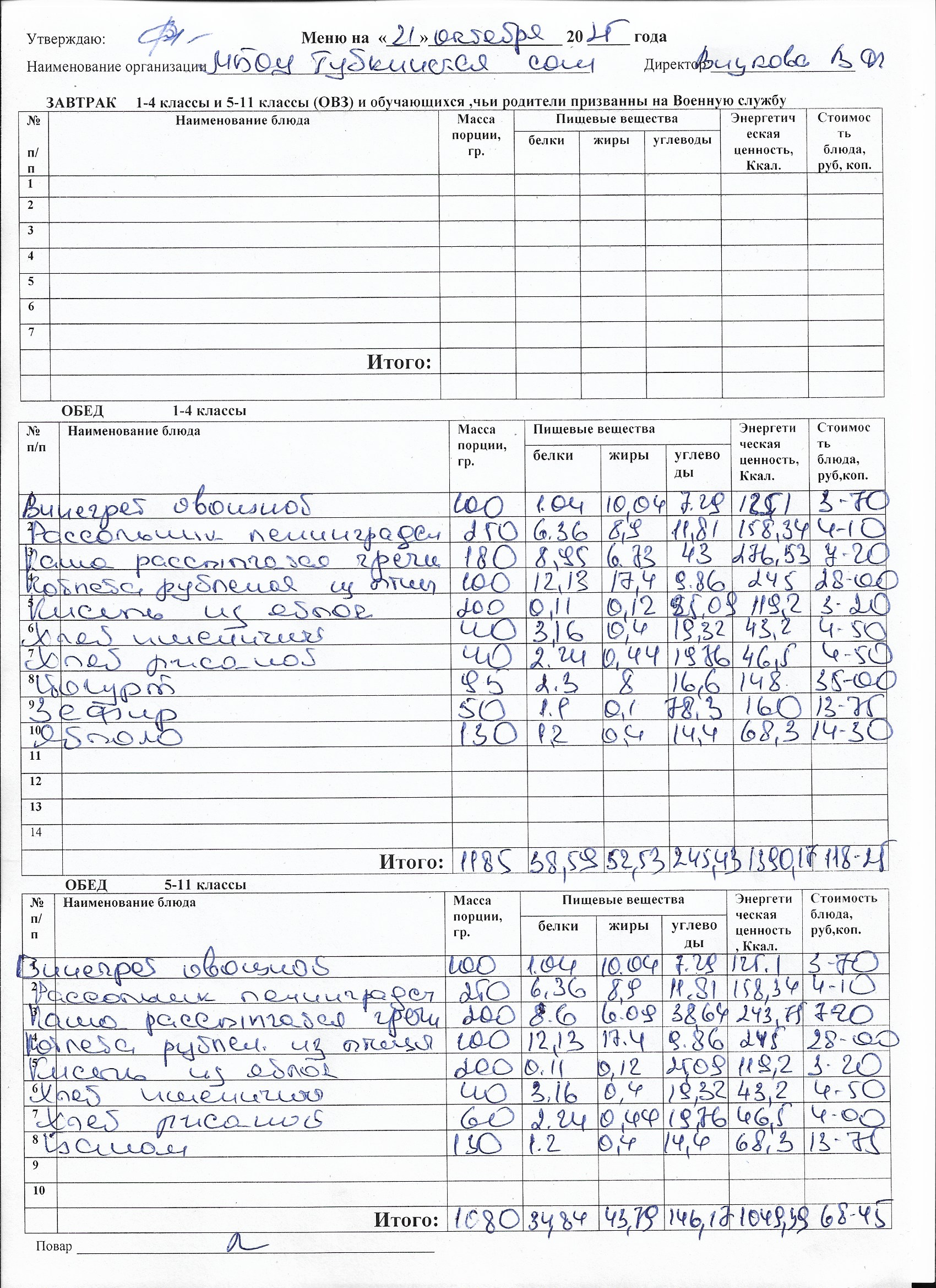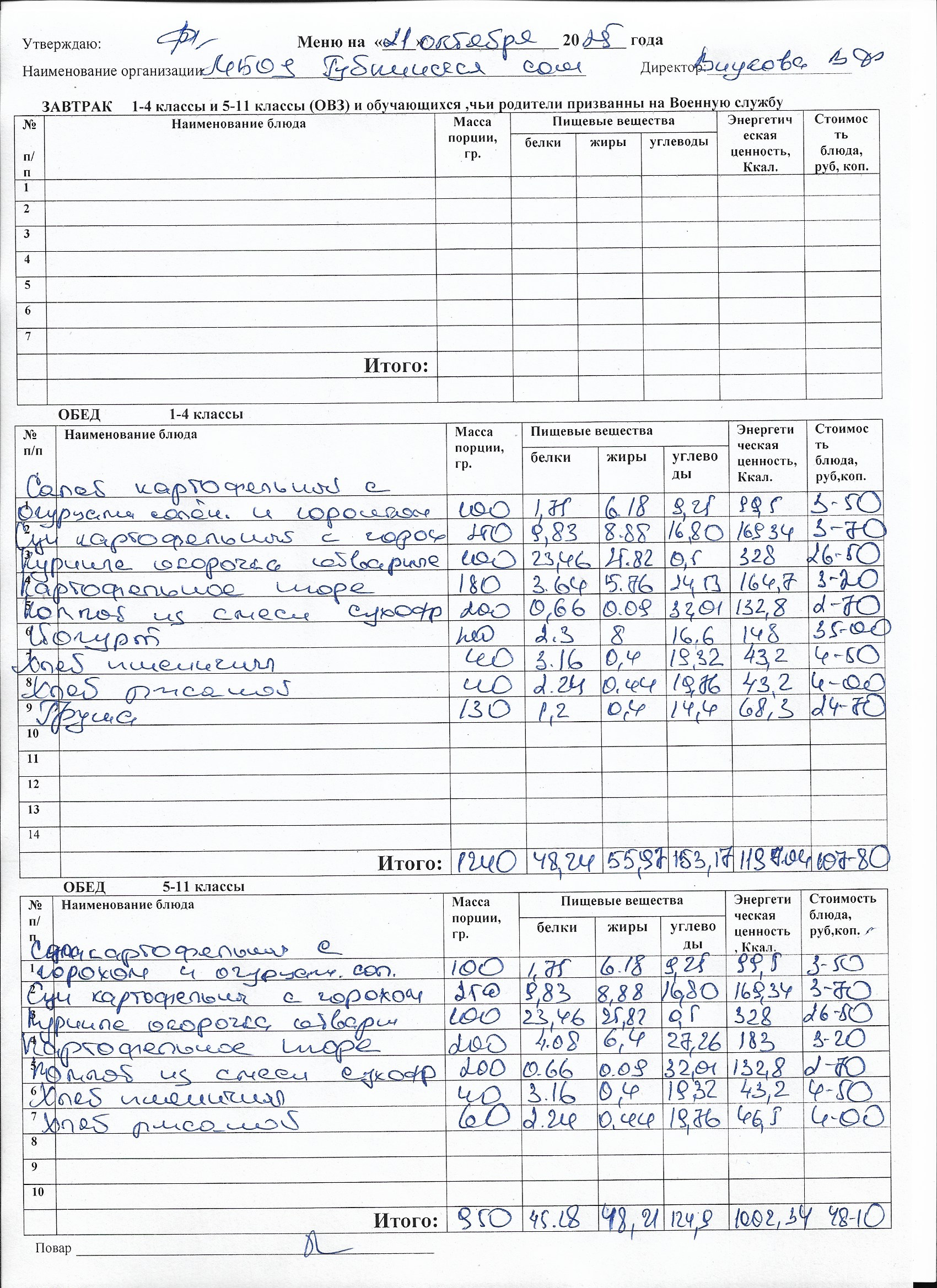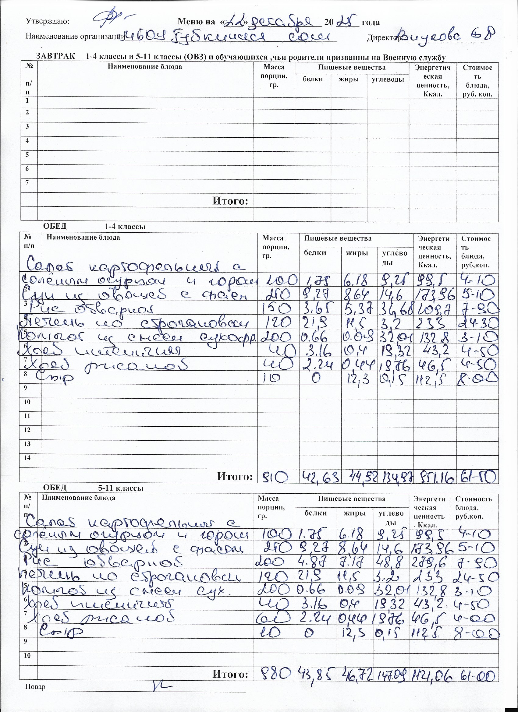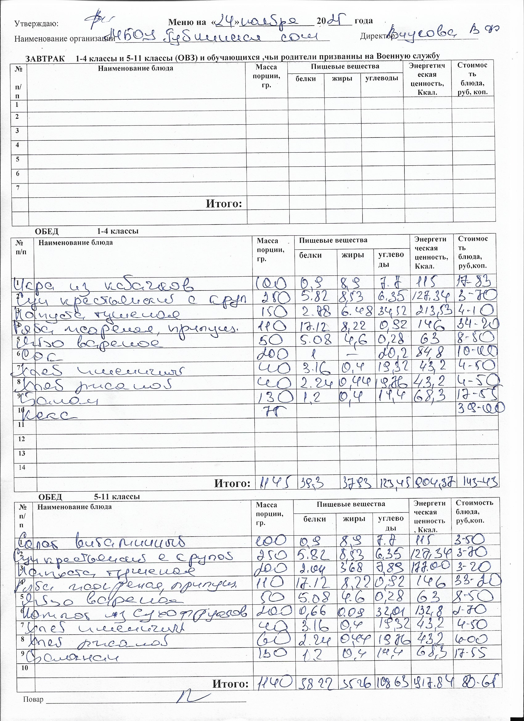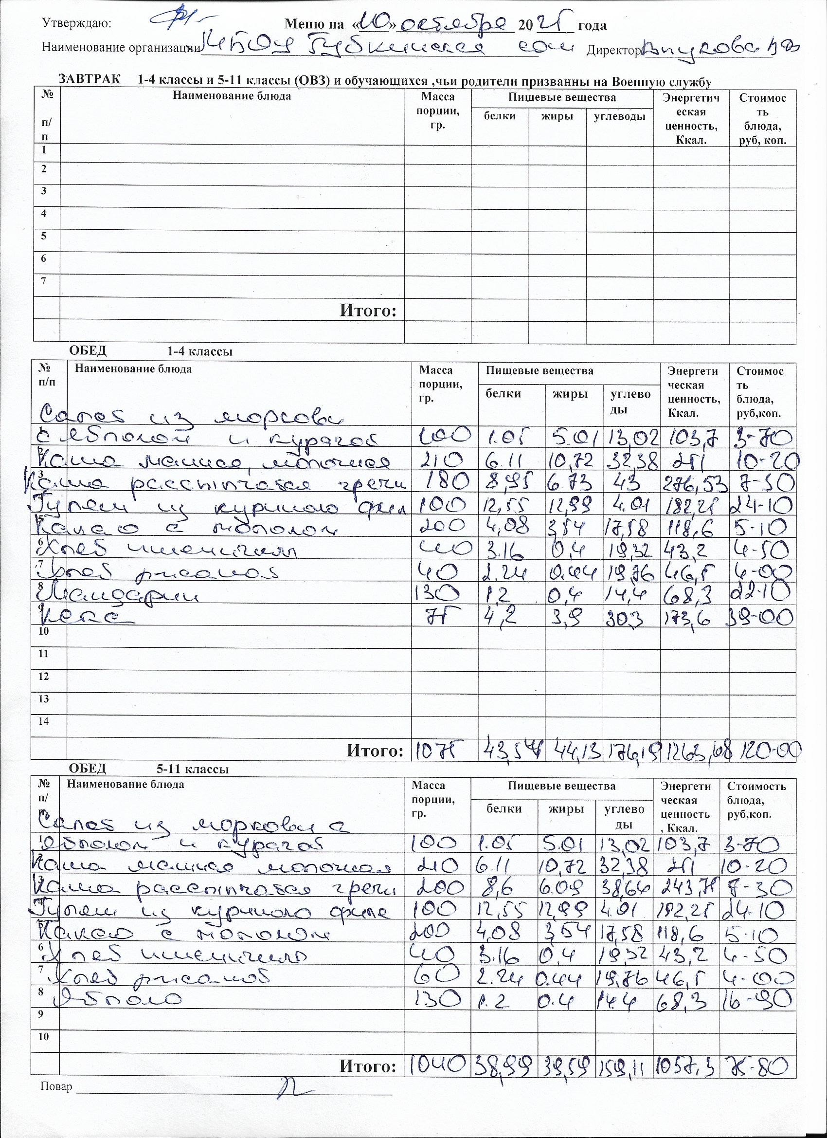 Меню на каждый день