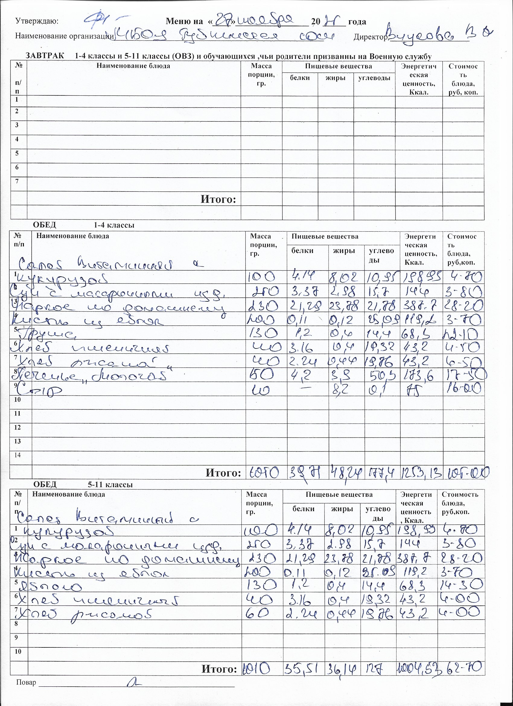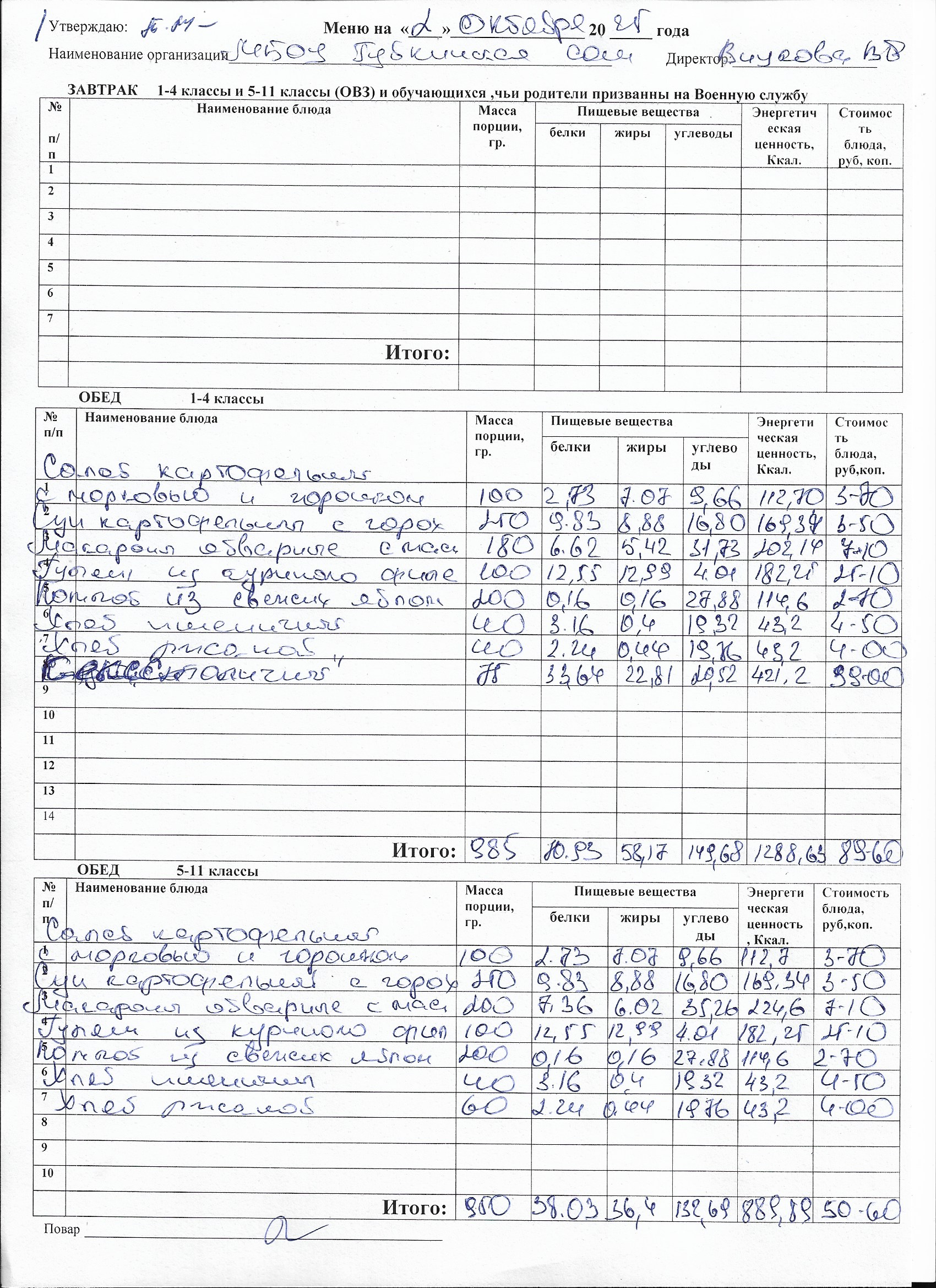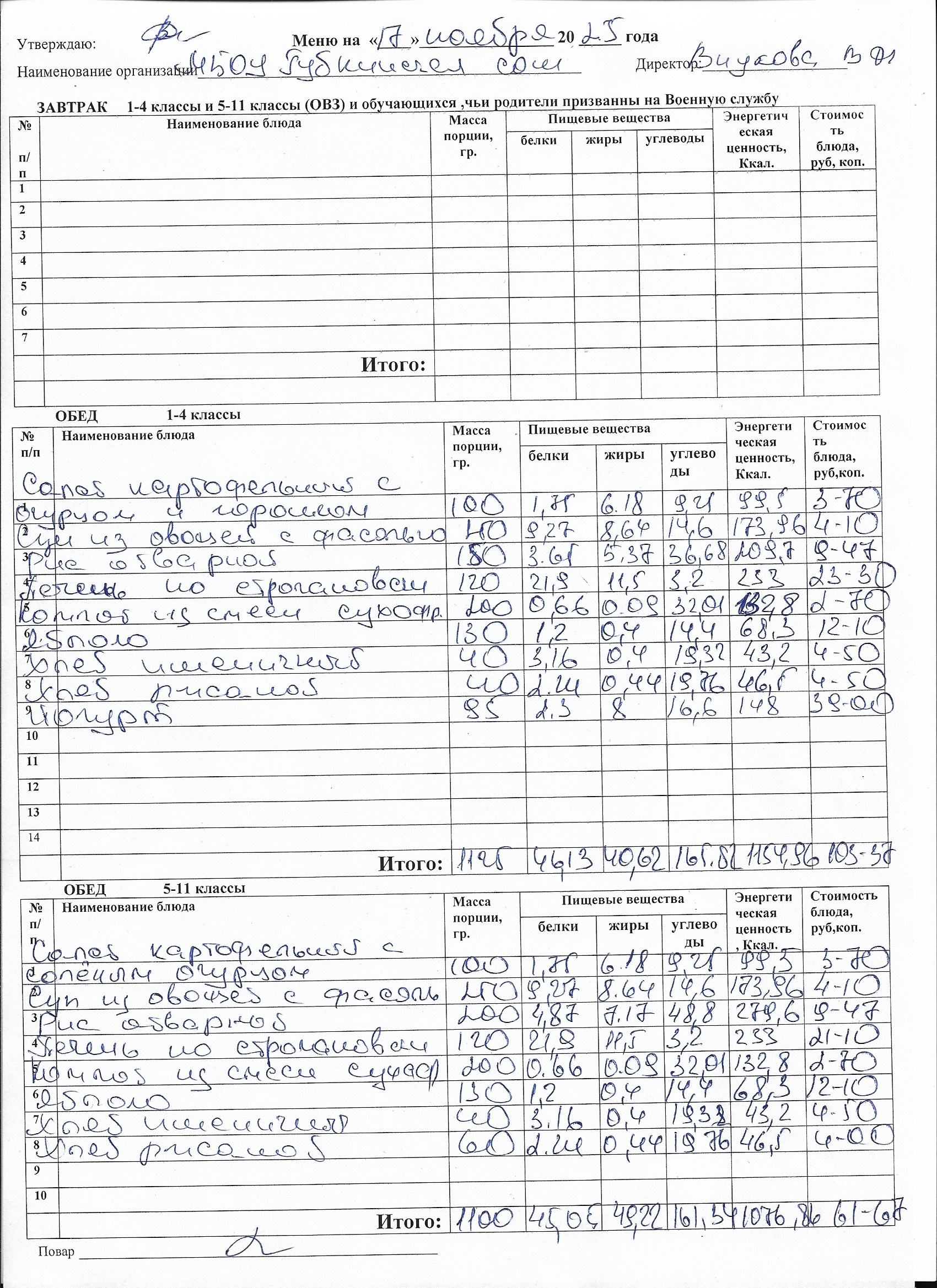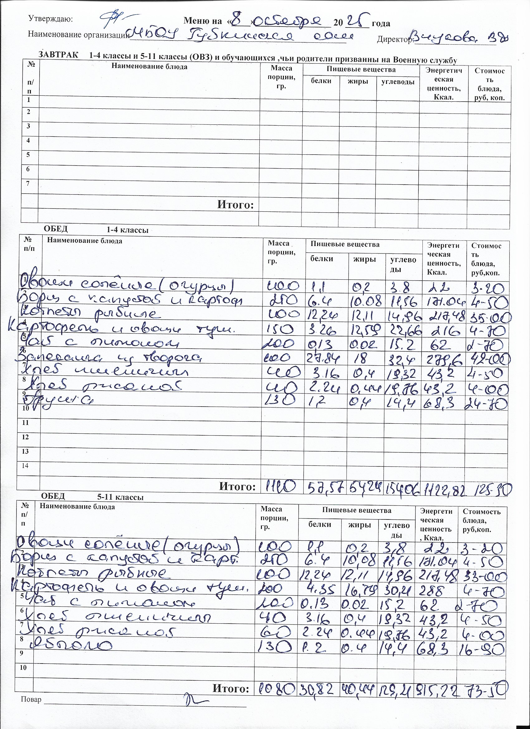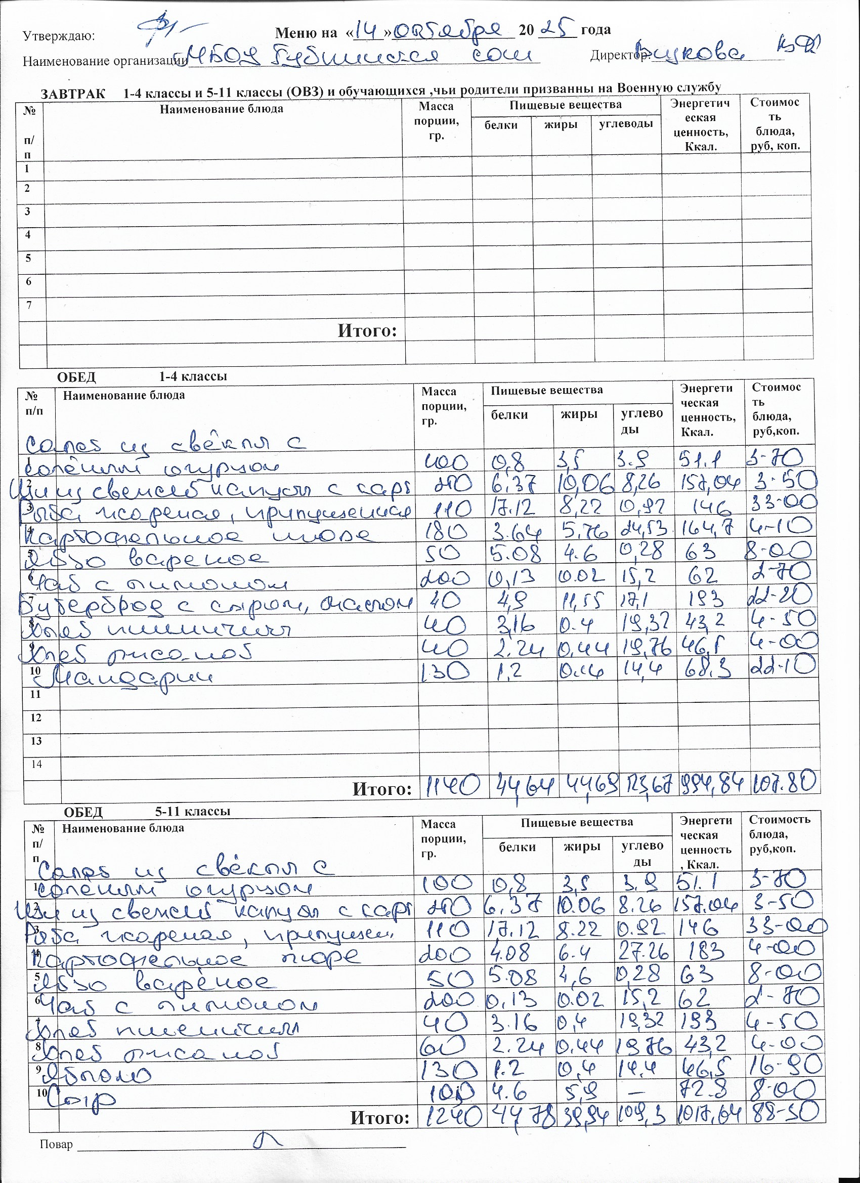 Меню на каждый день