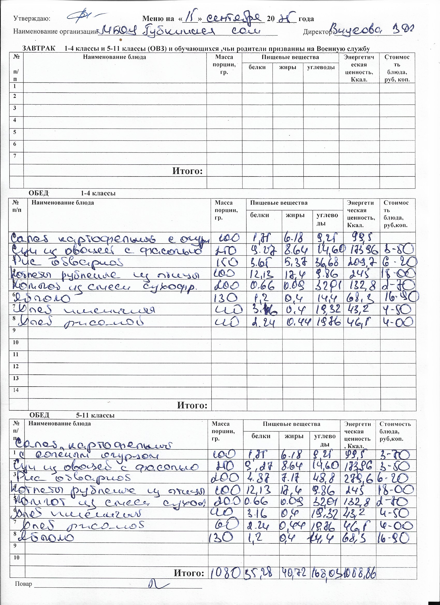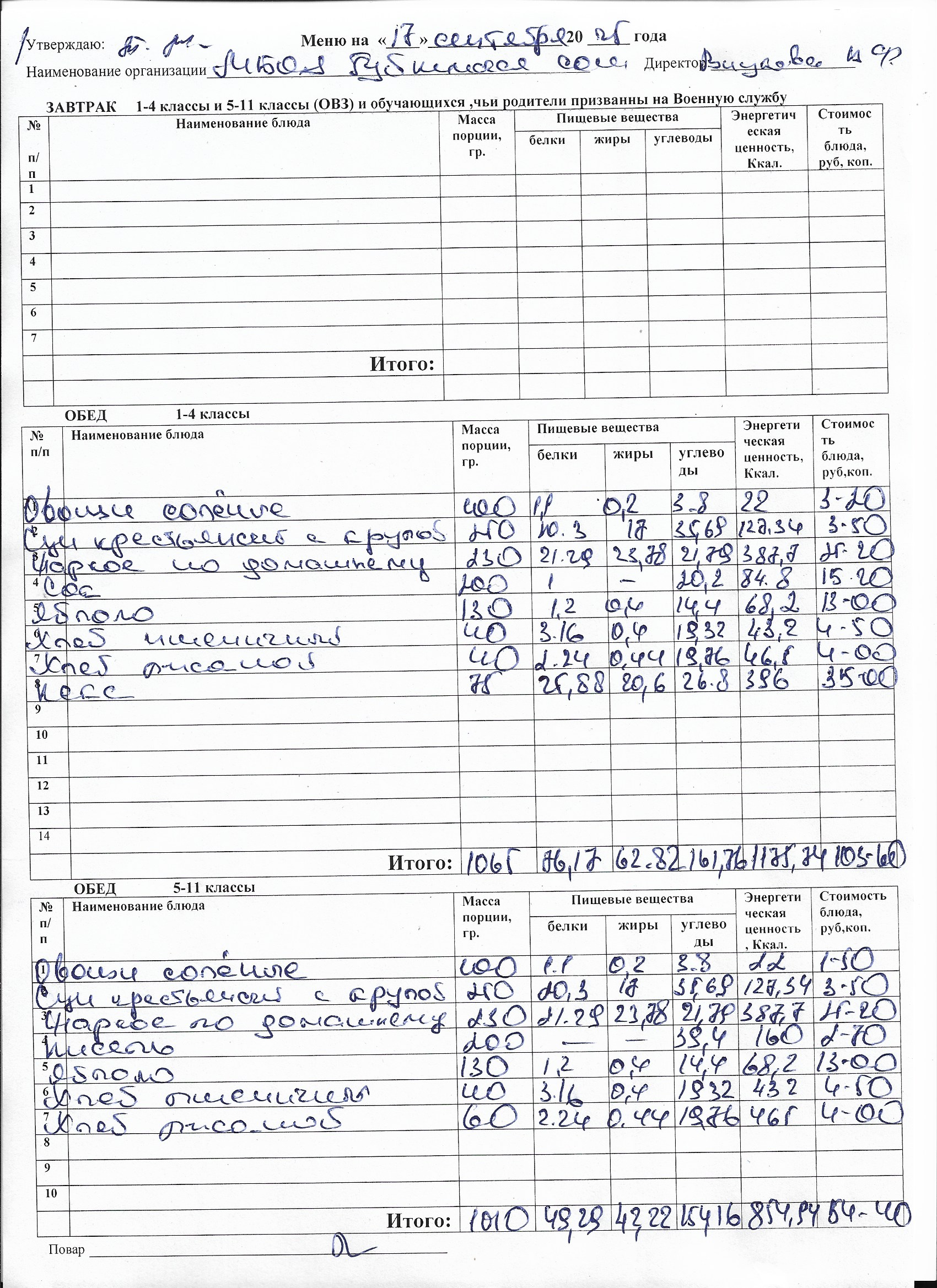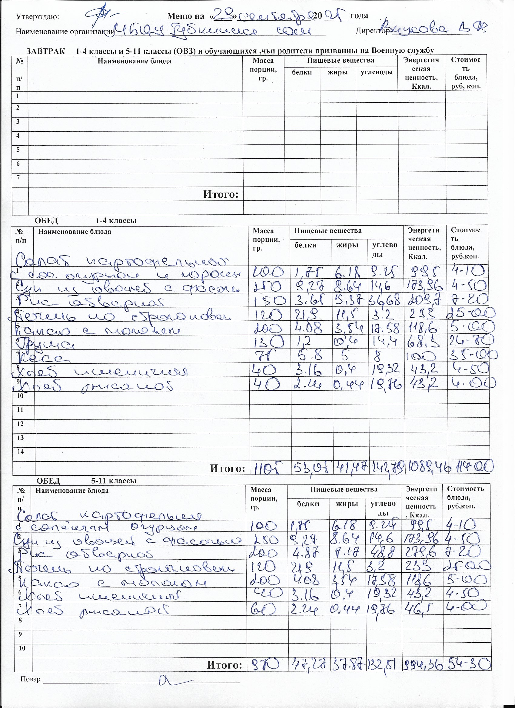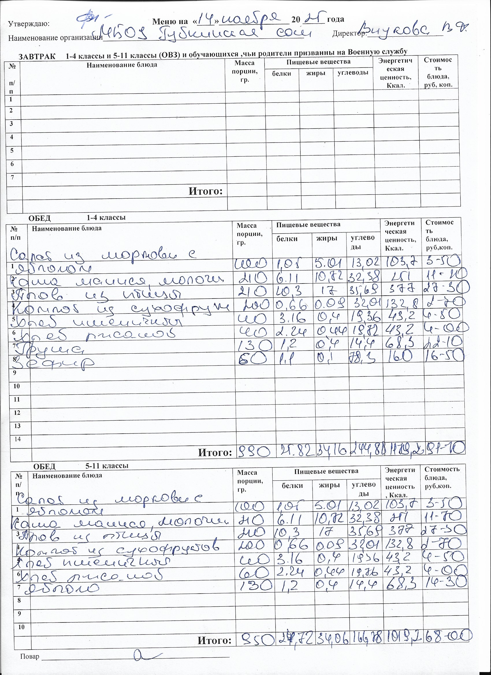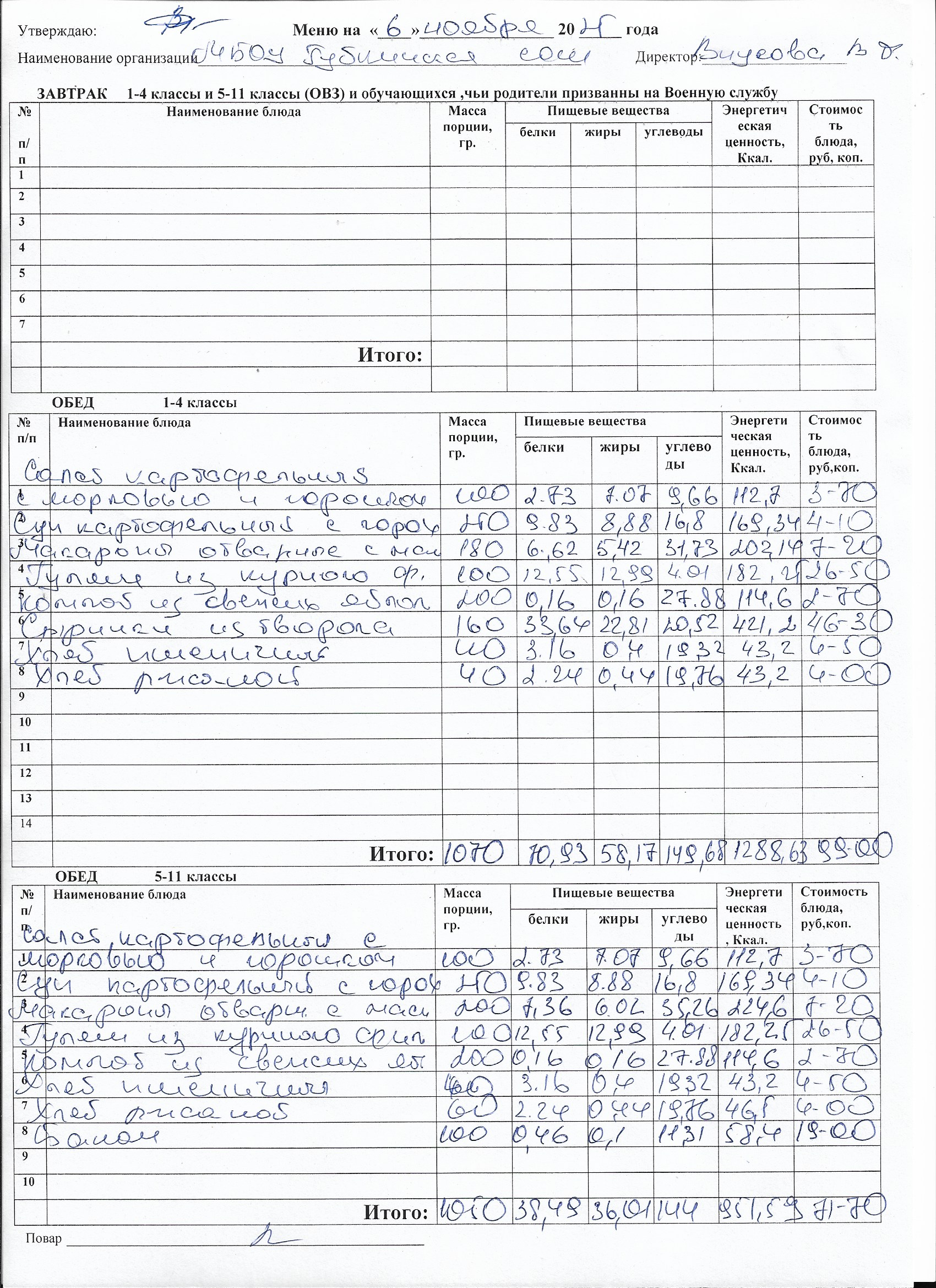 Меню на каждый день