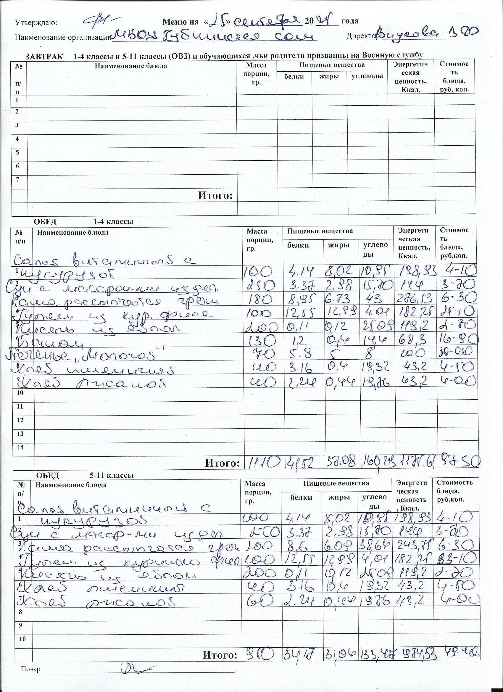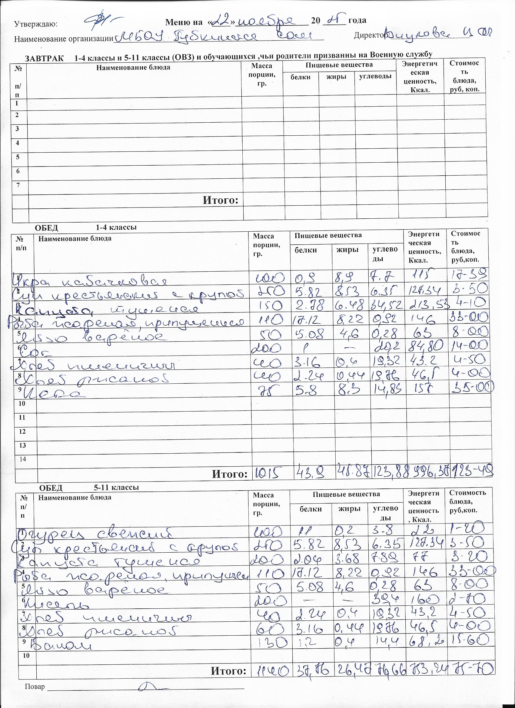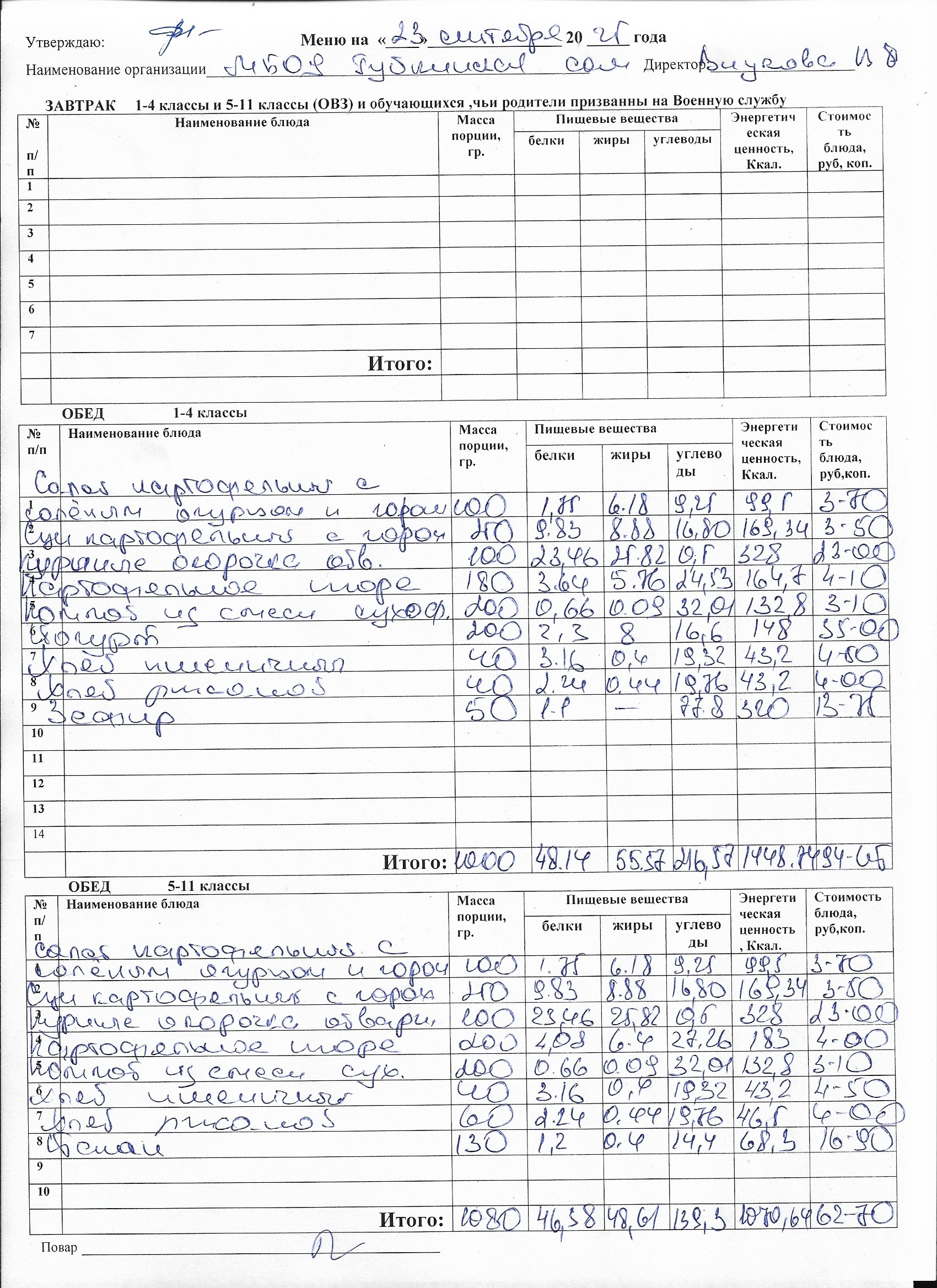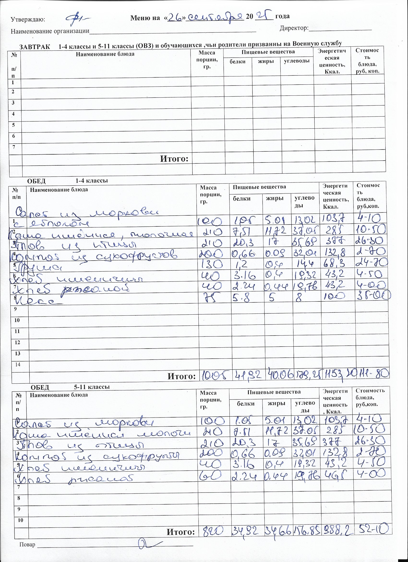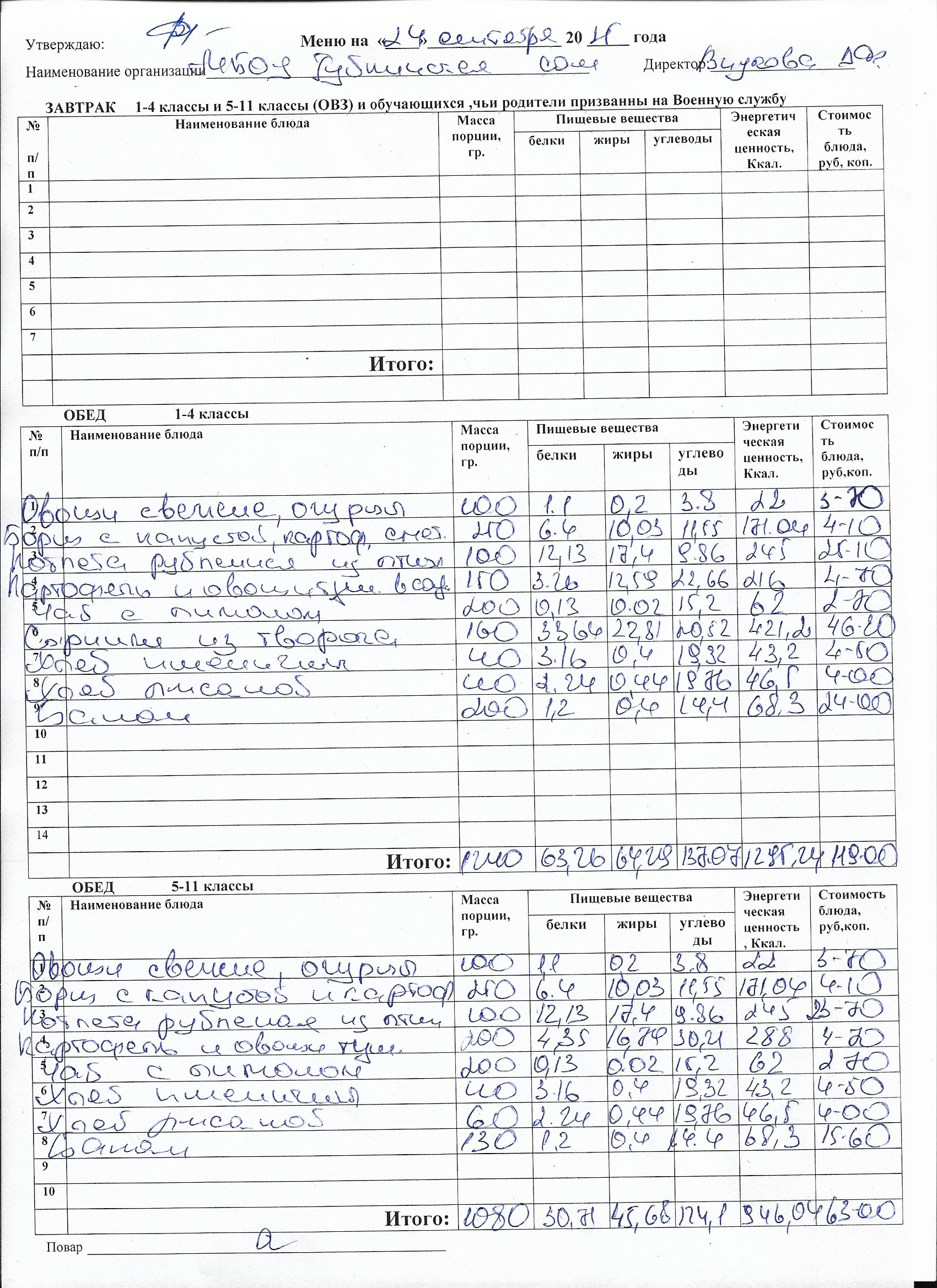 Меню на каждый день