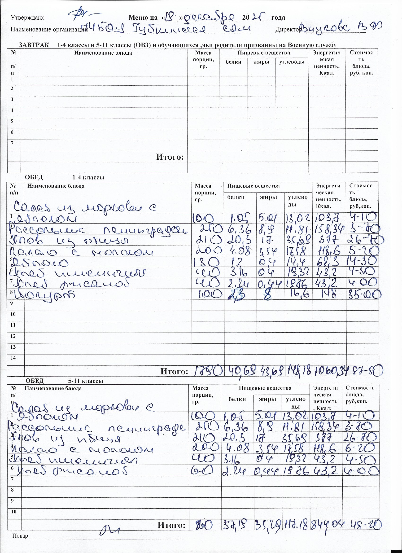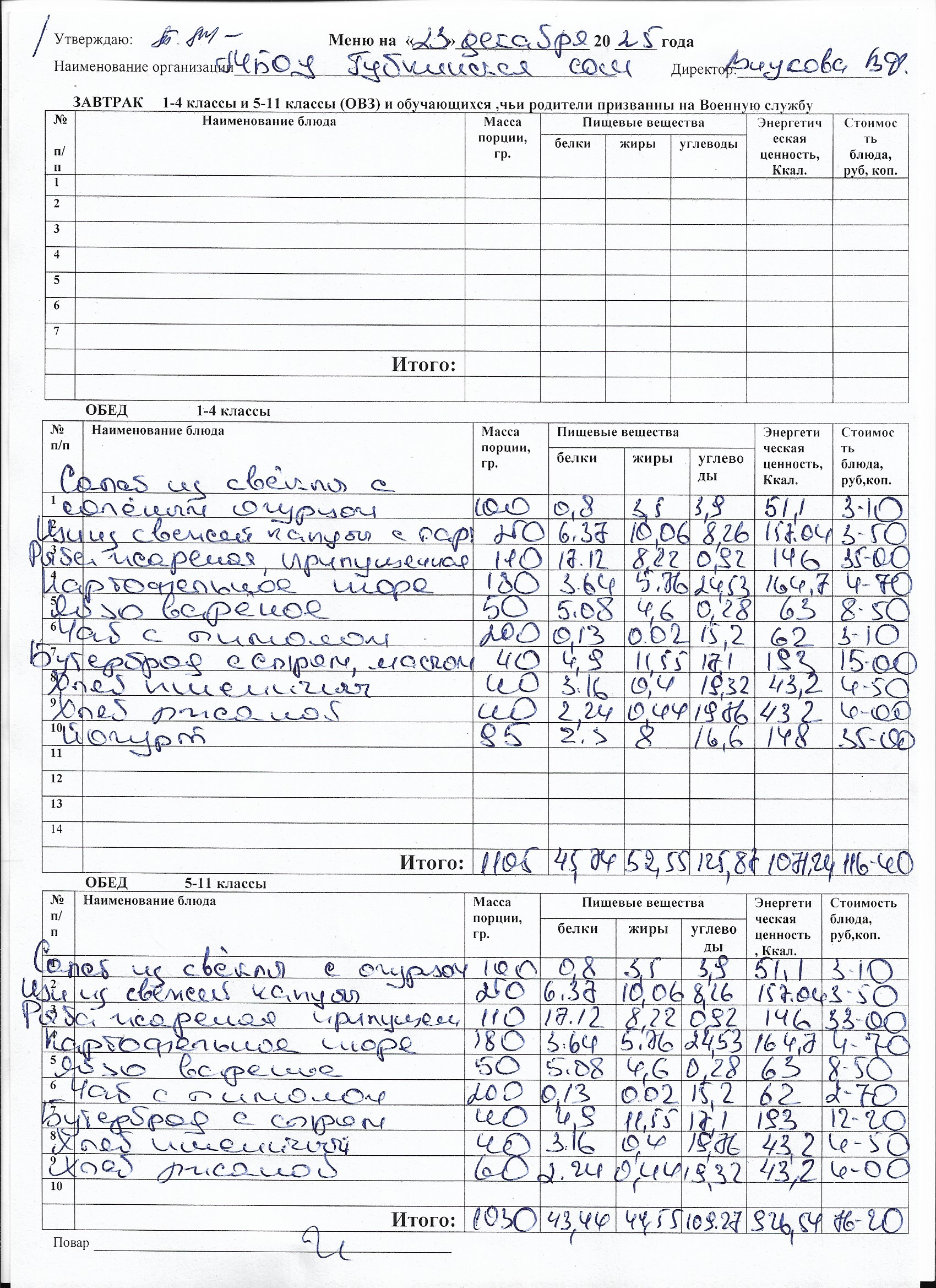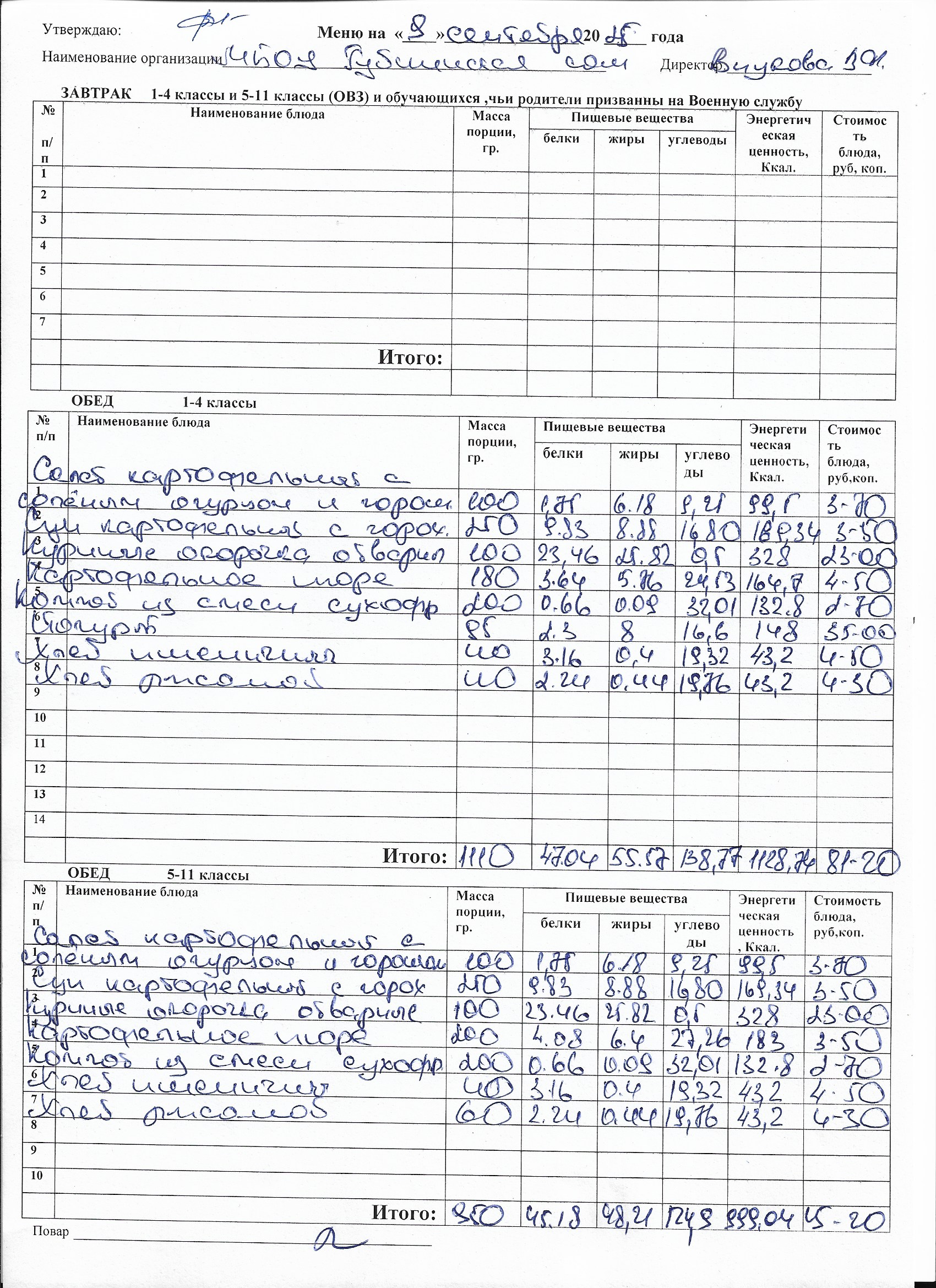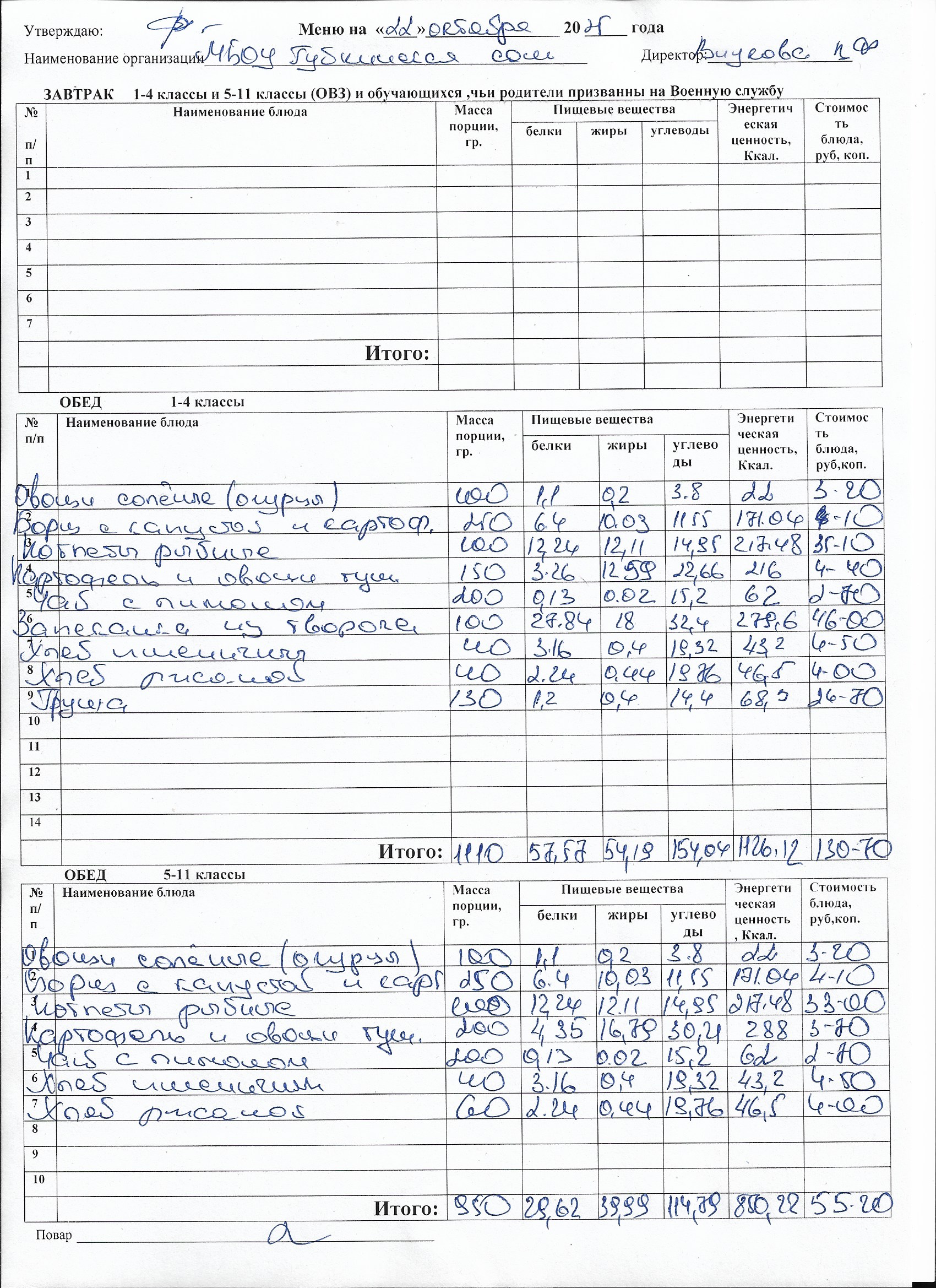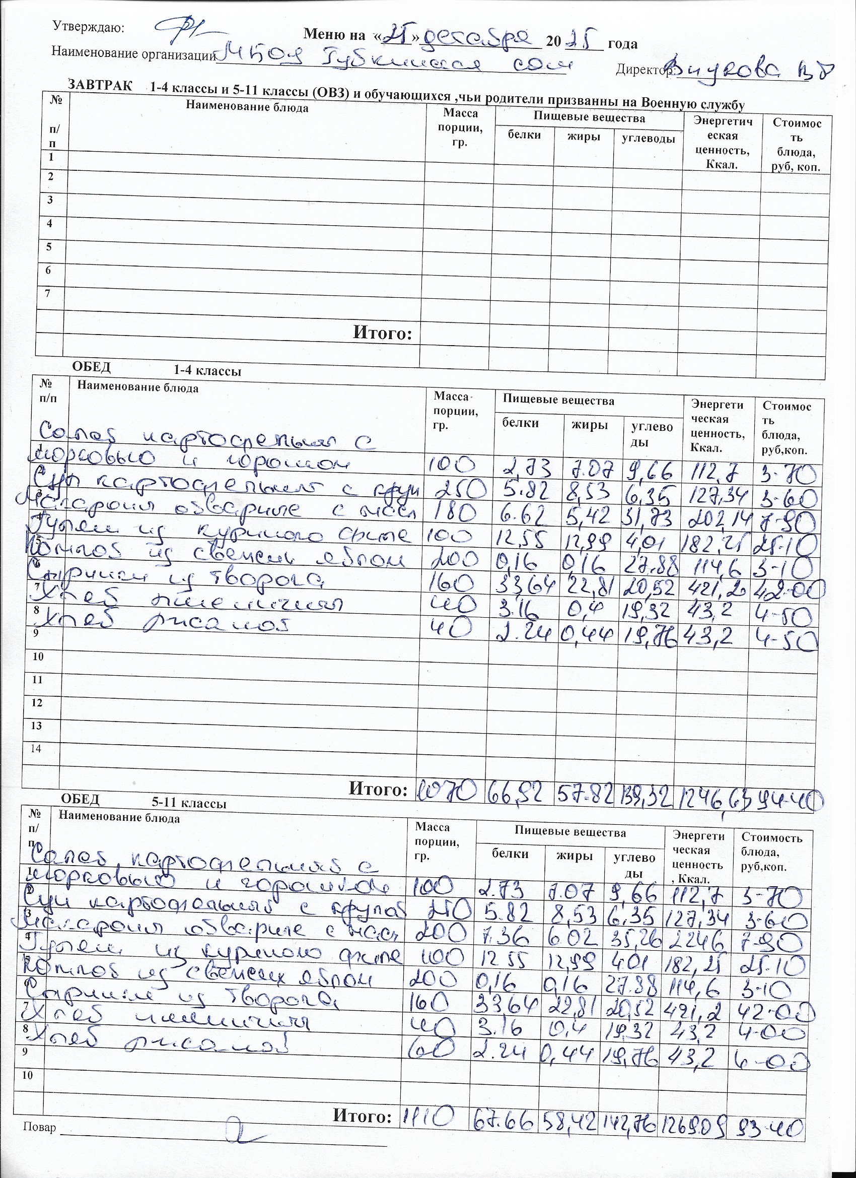 Меню на каждый день