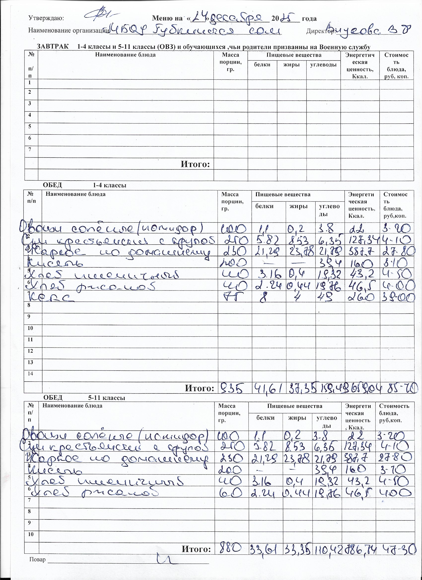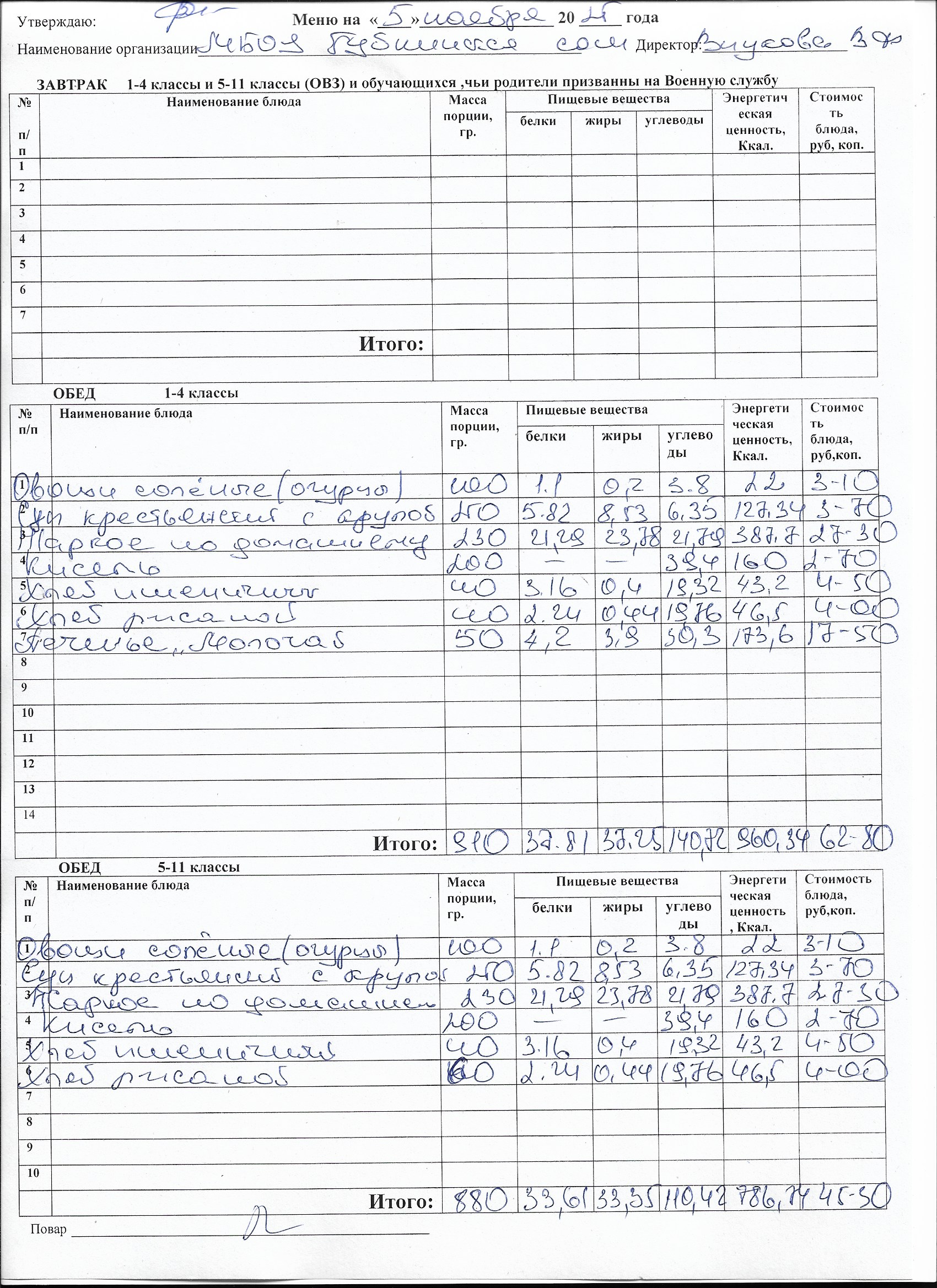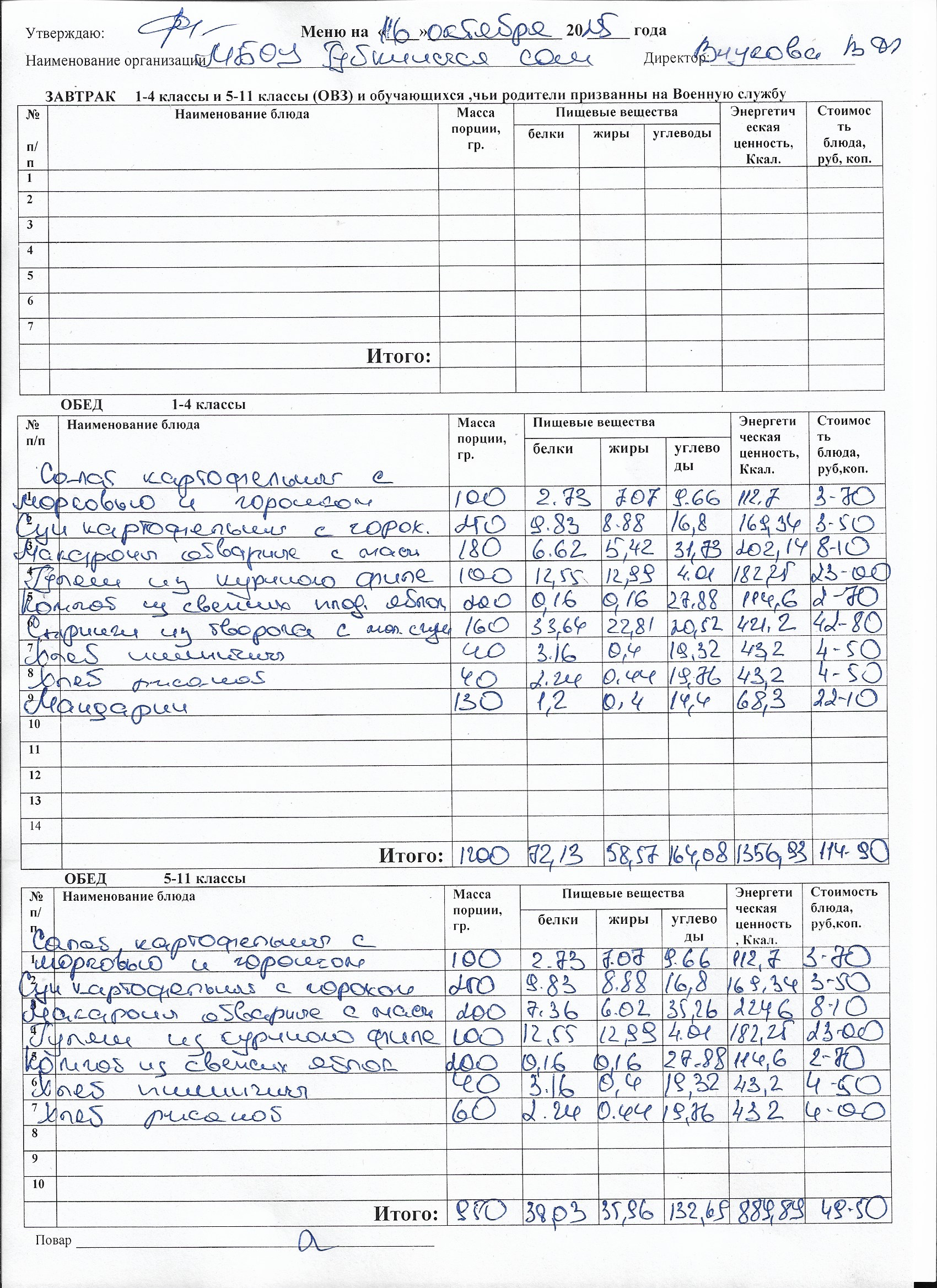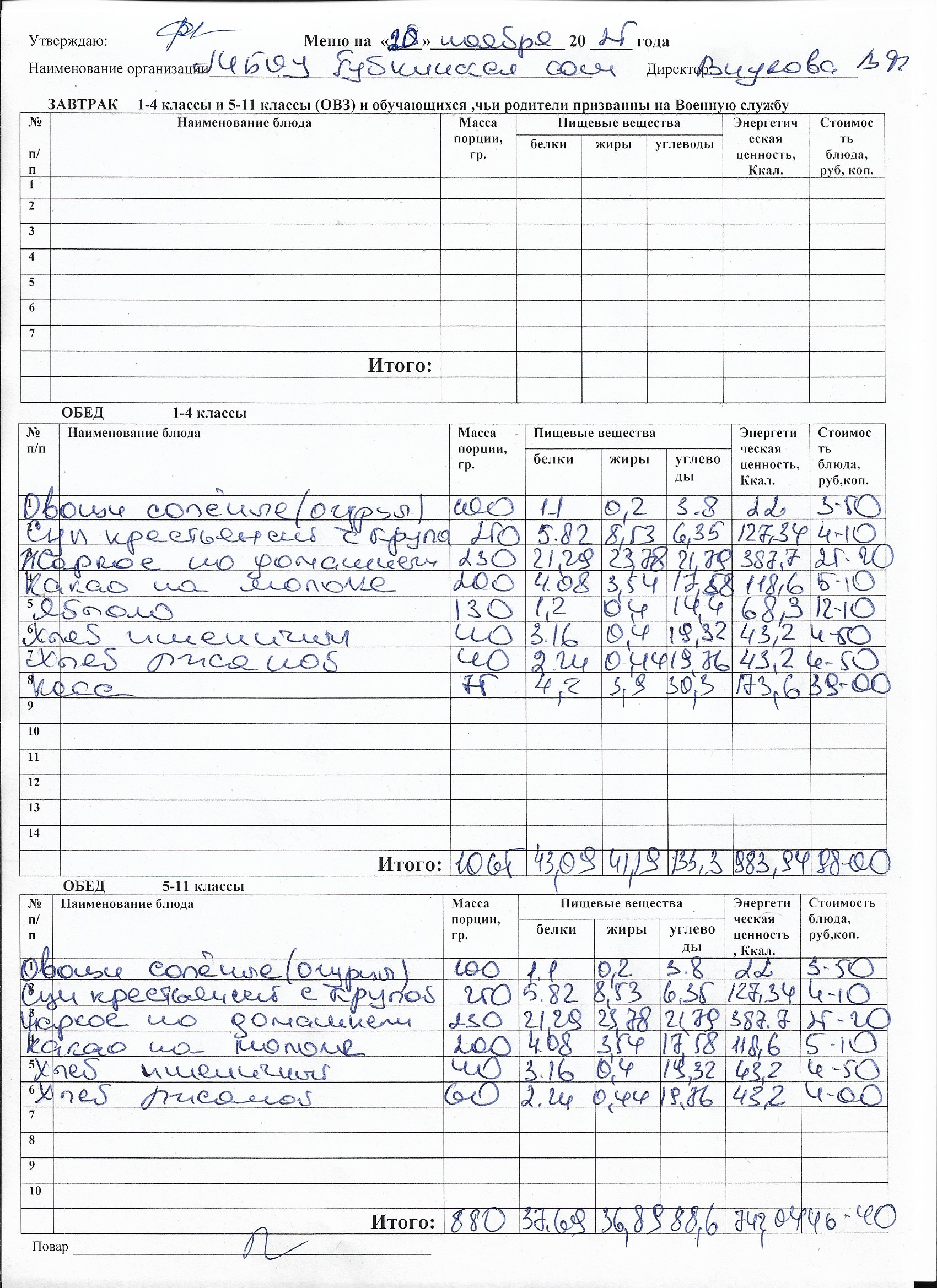 Меню на каждый день