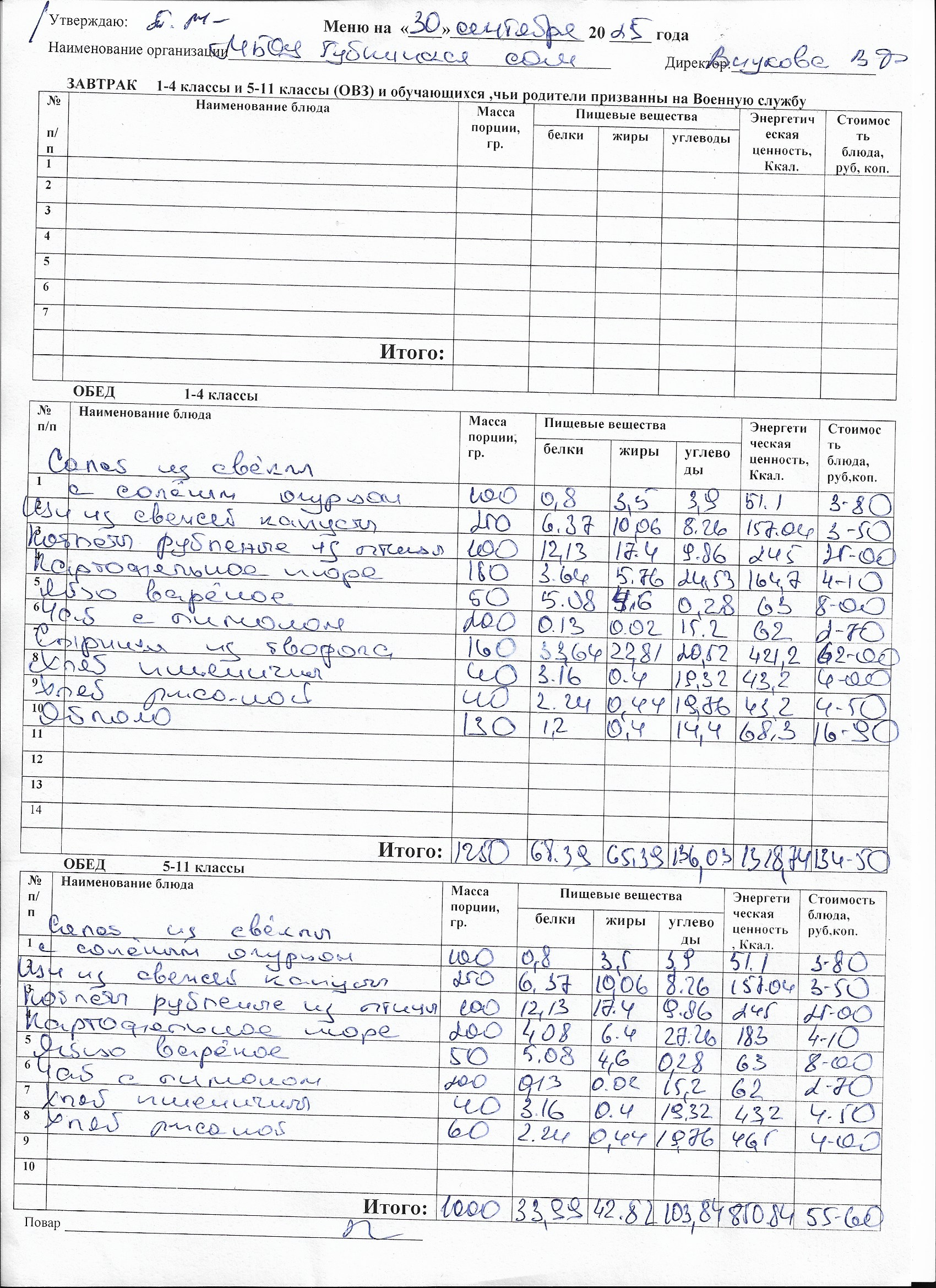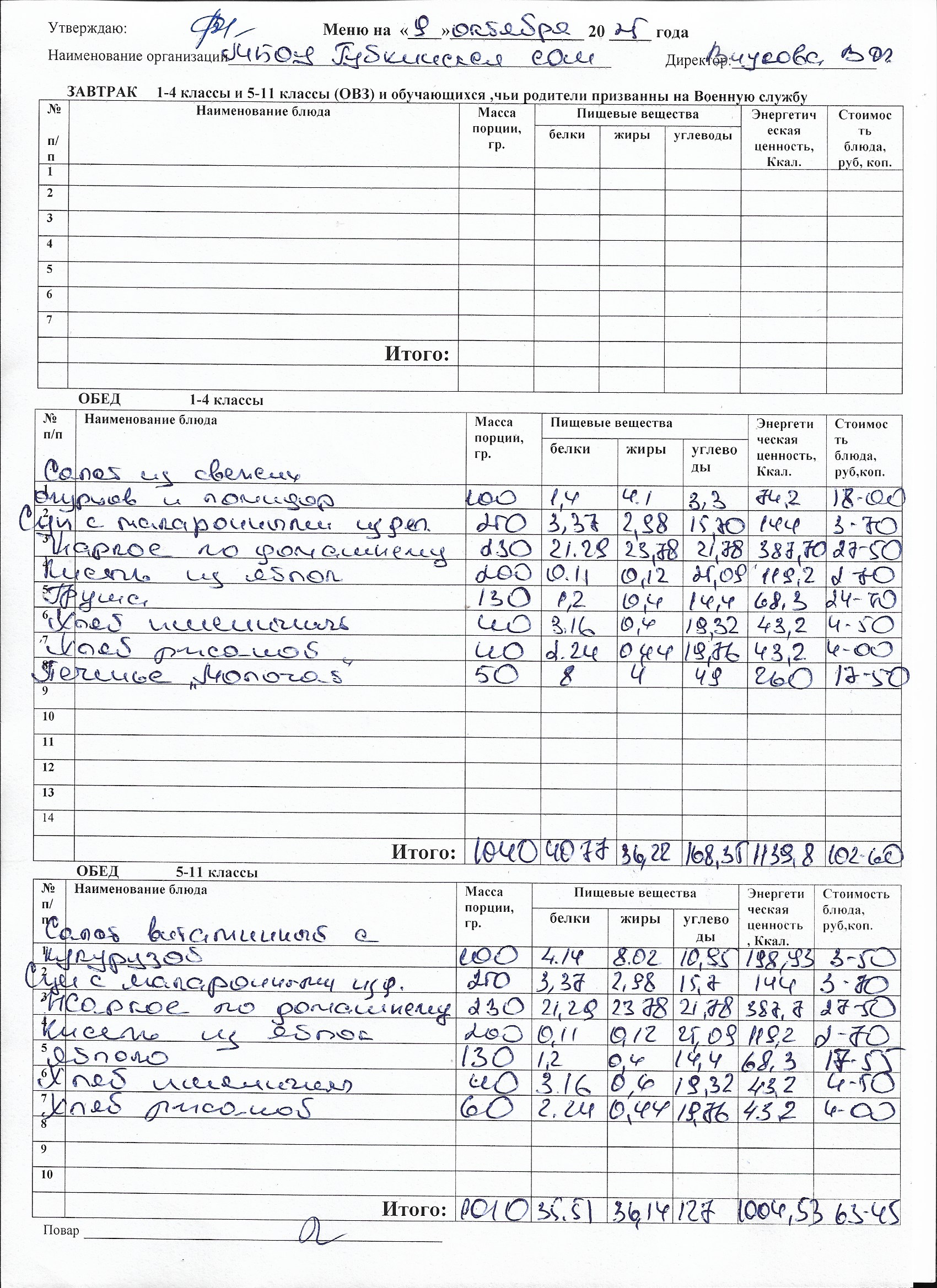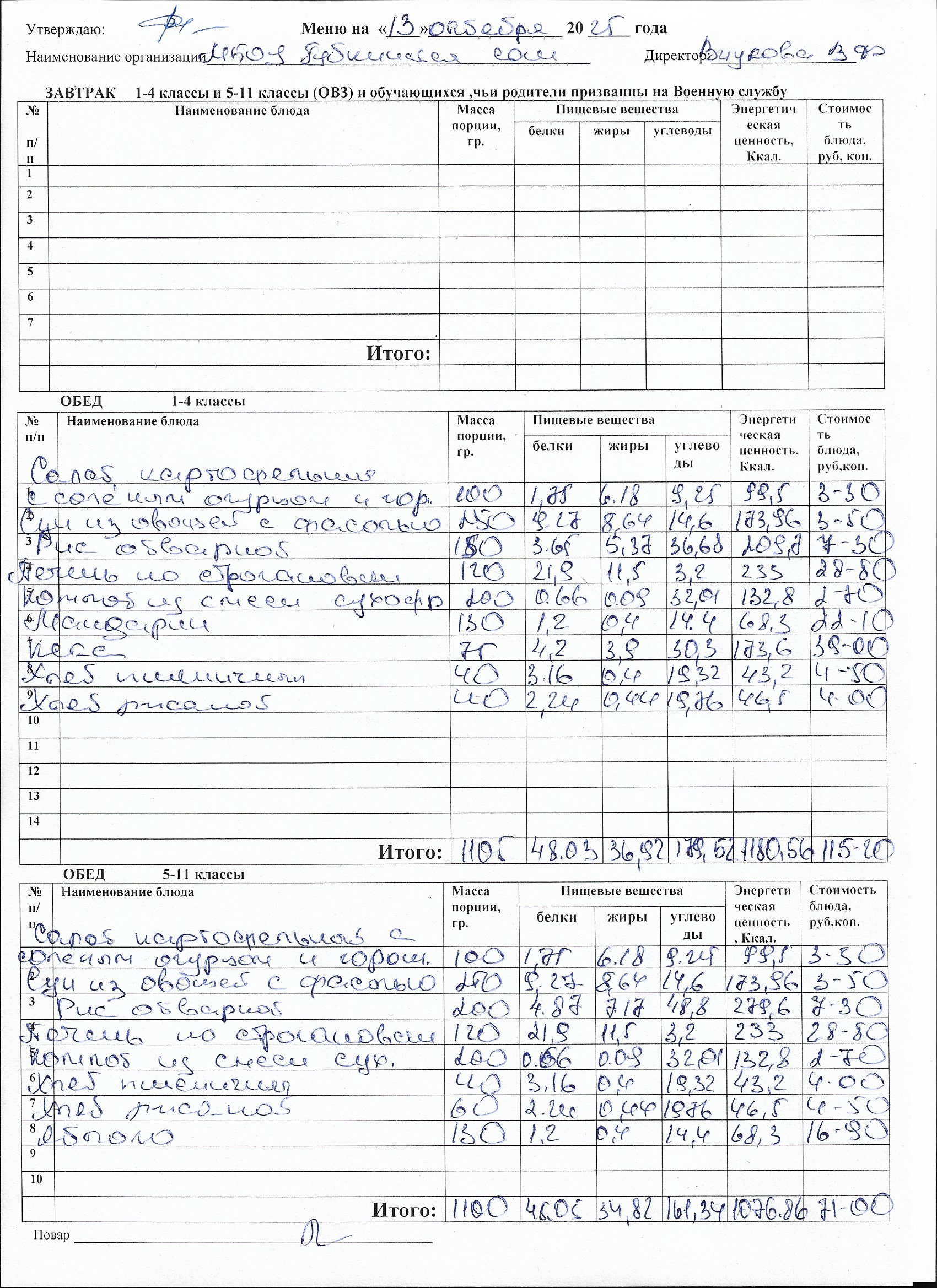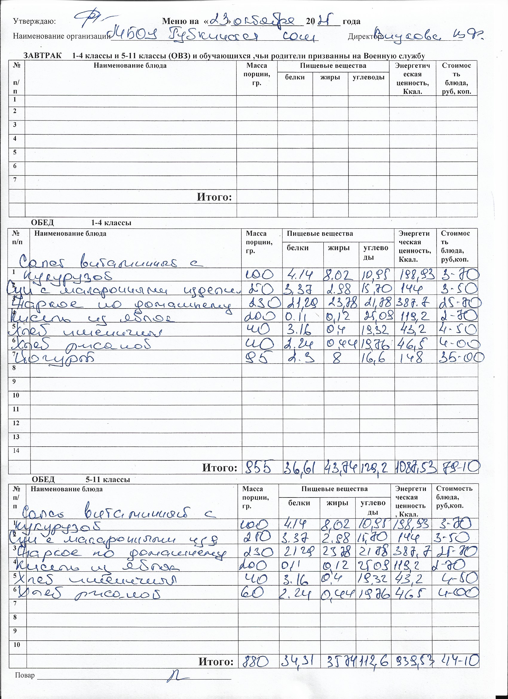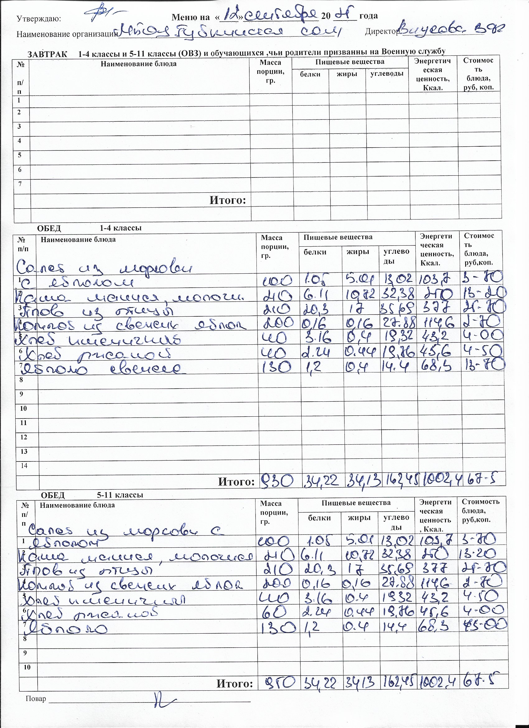Меню на каждый день