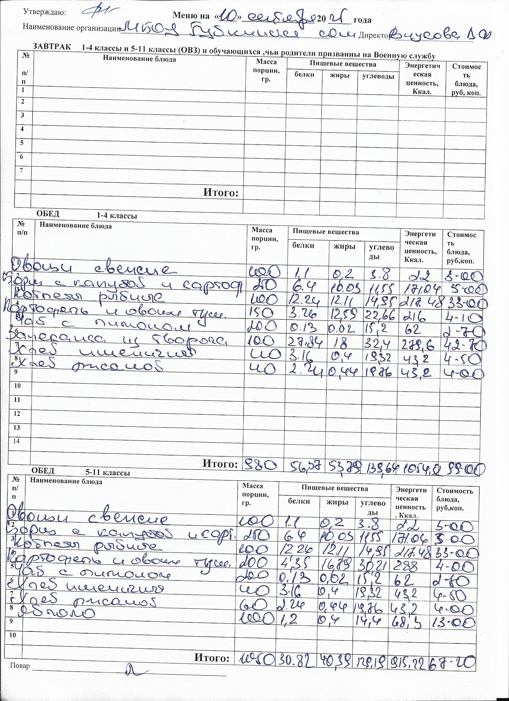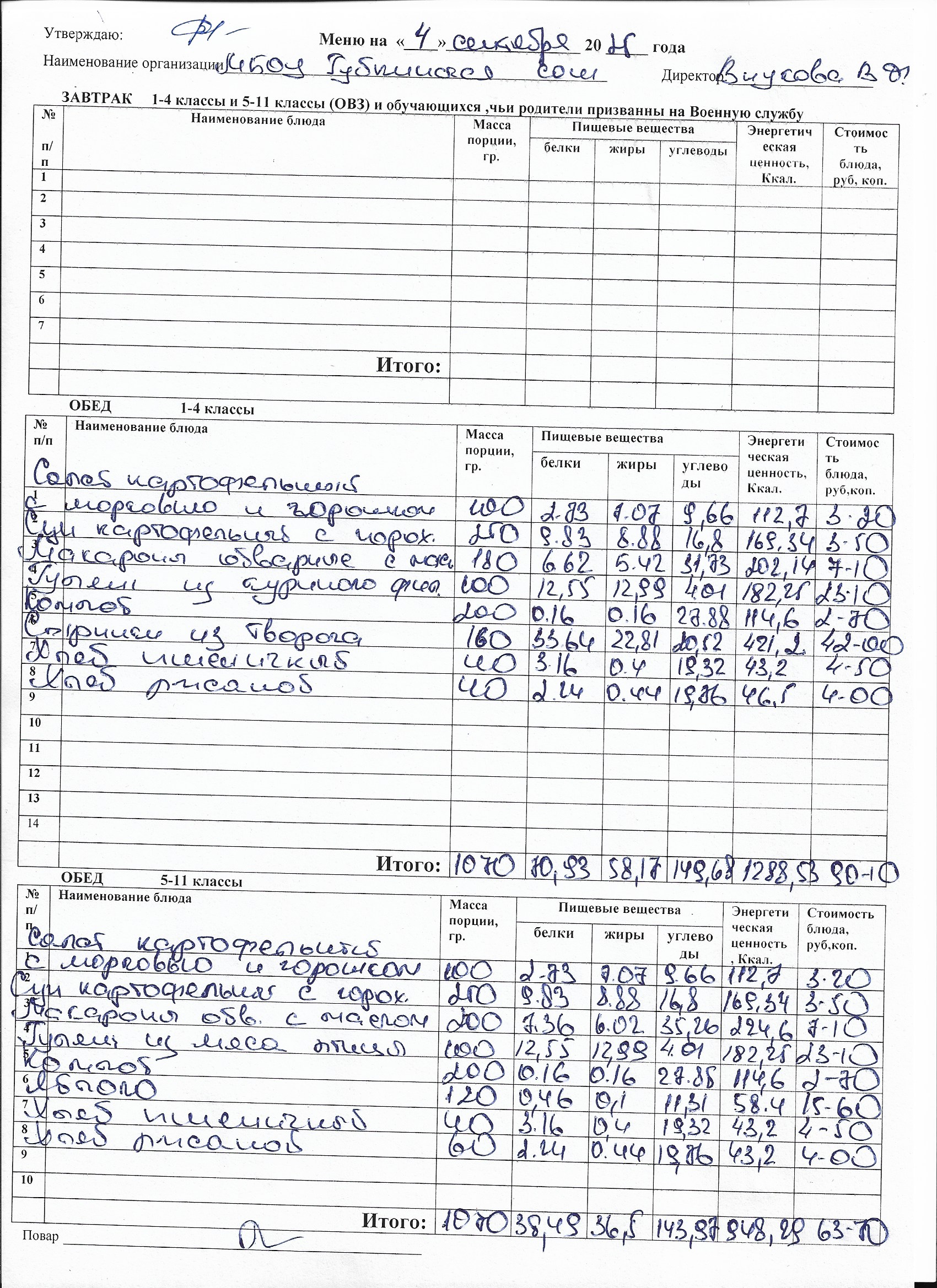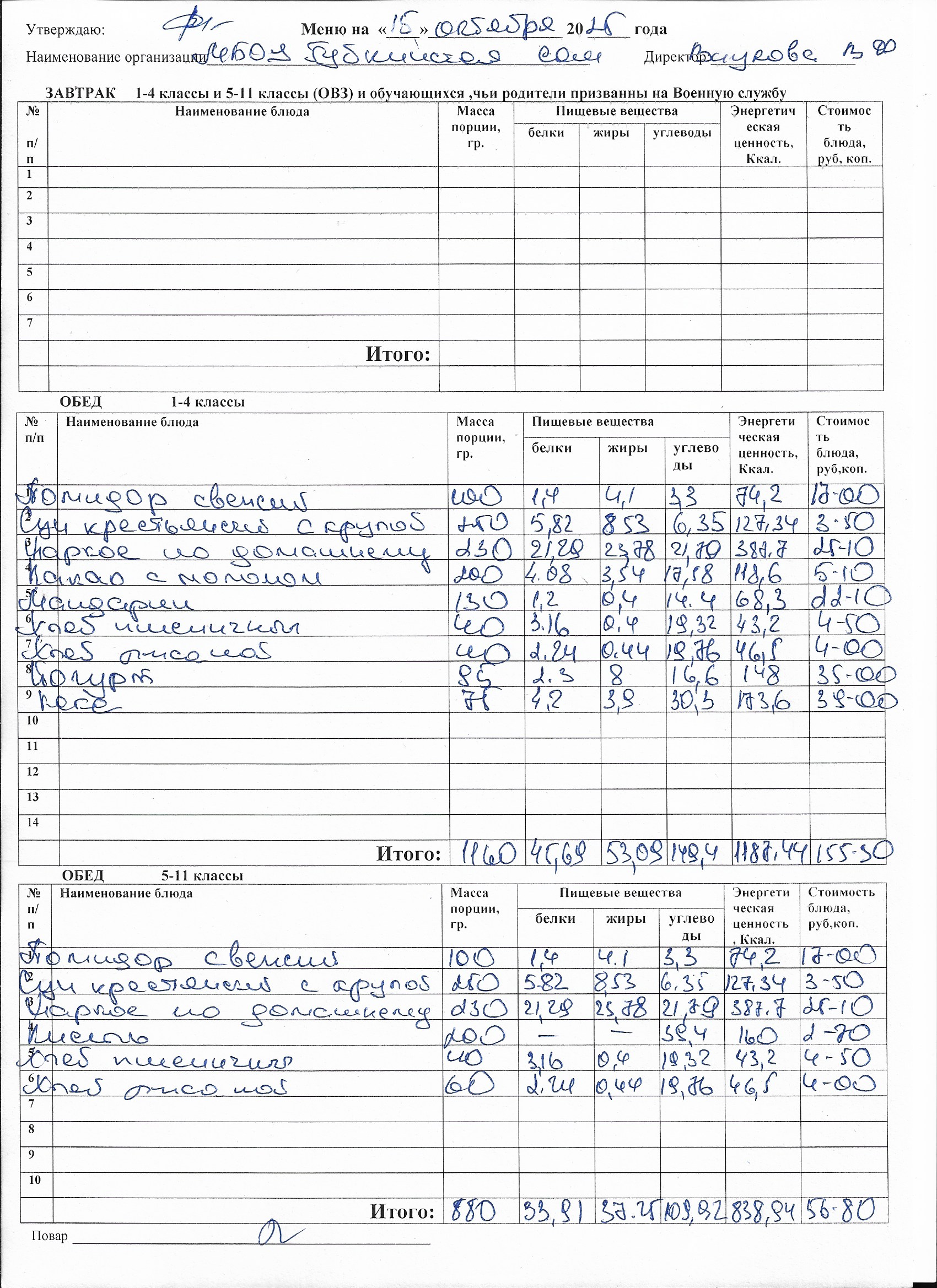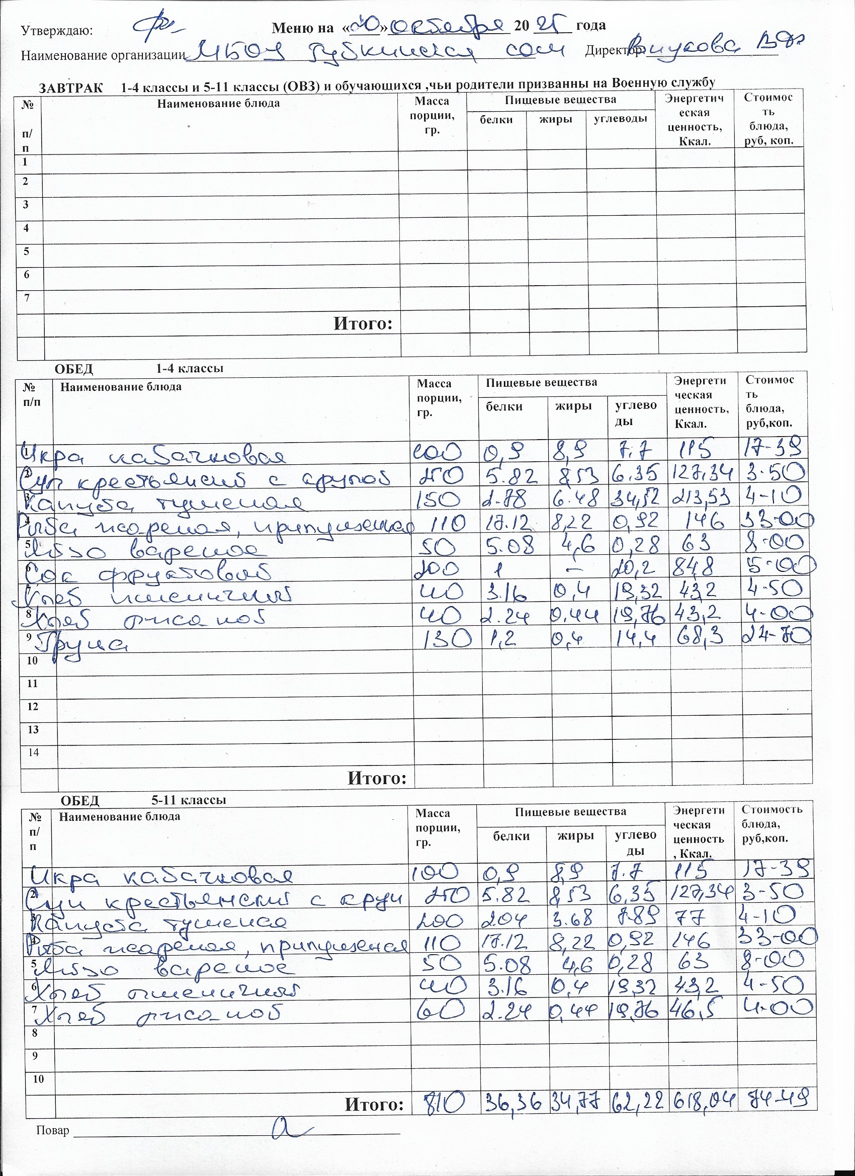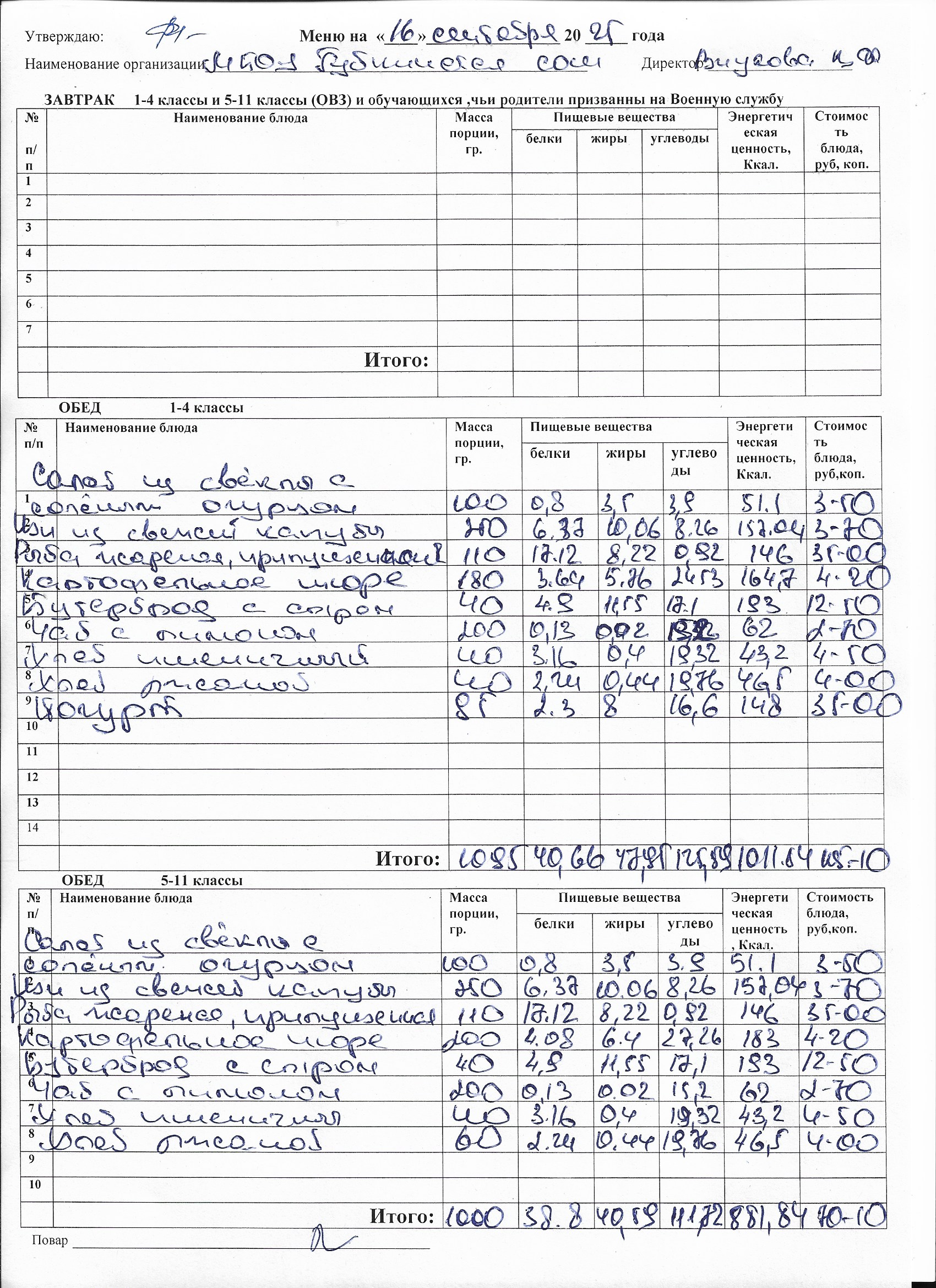Меню на каждый день