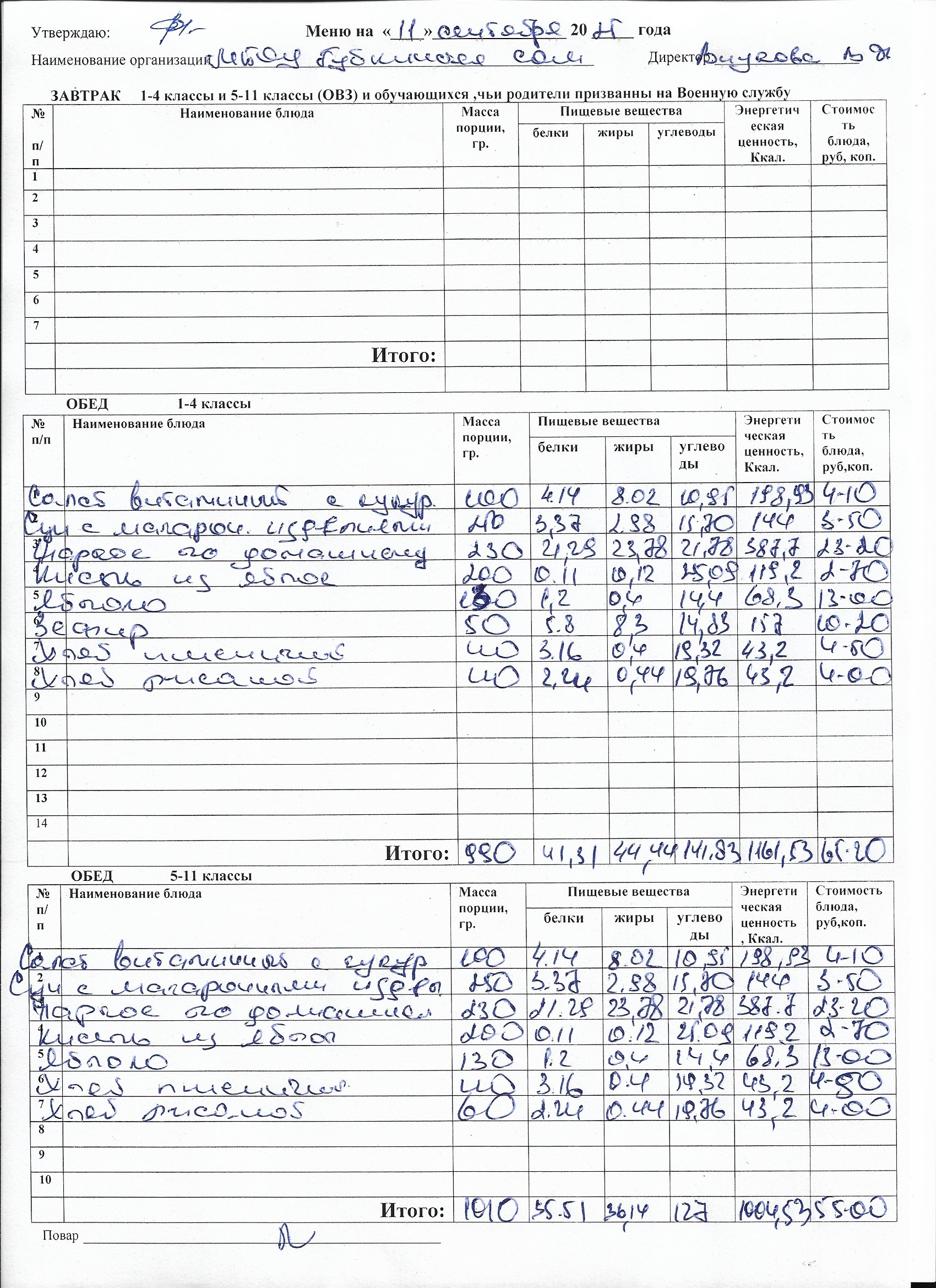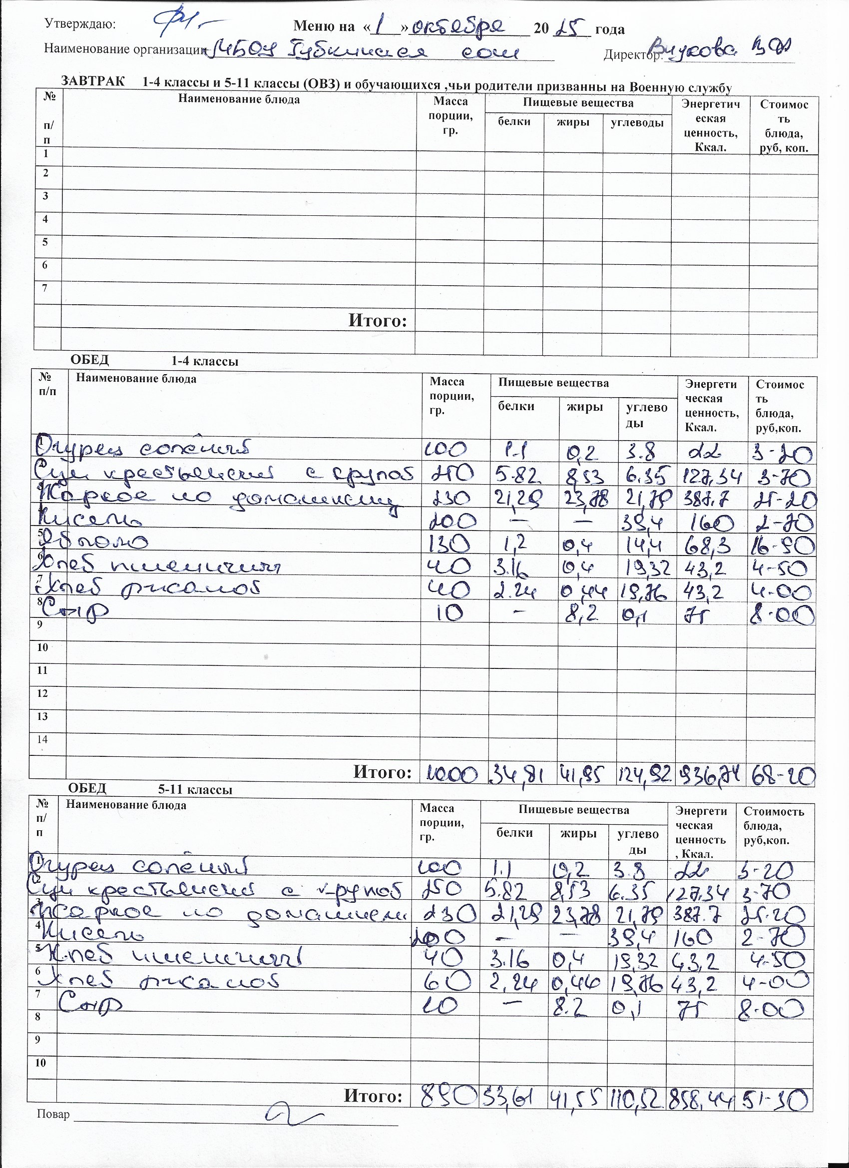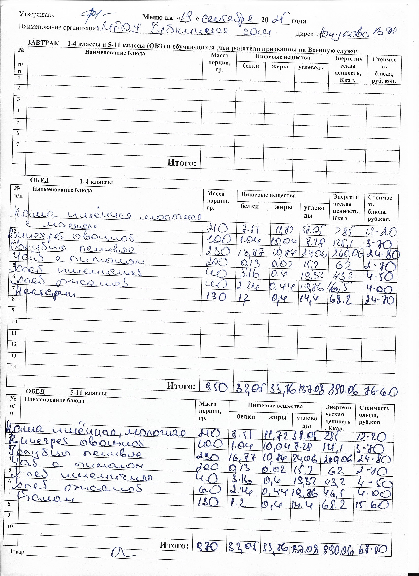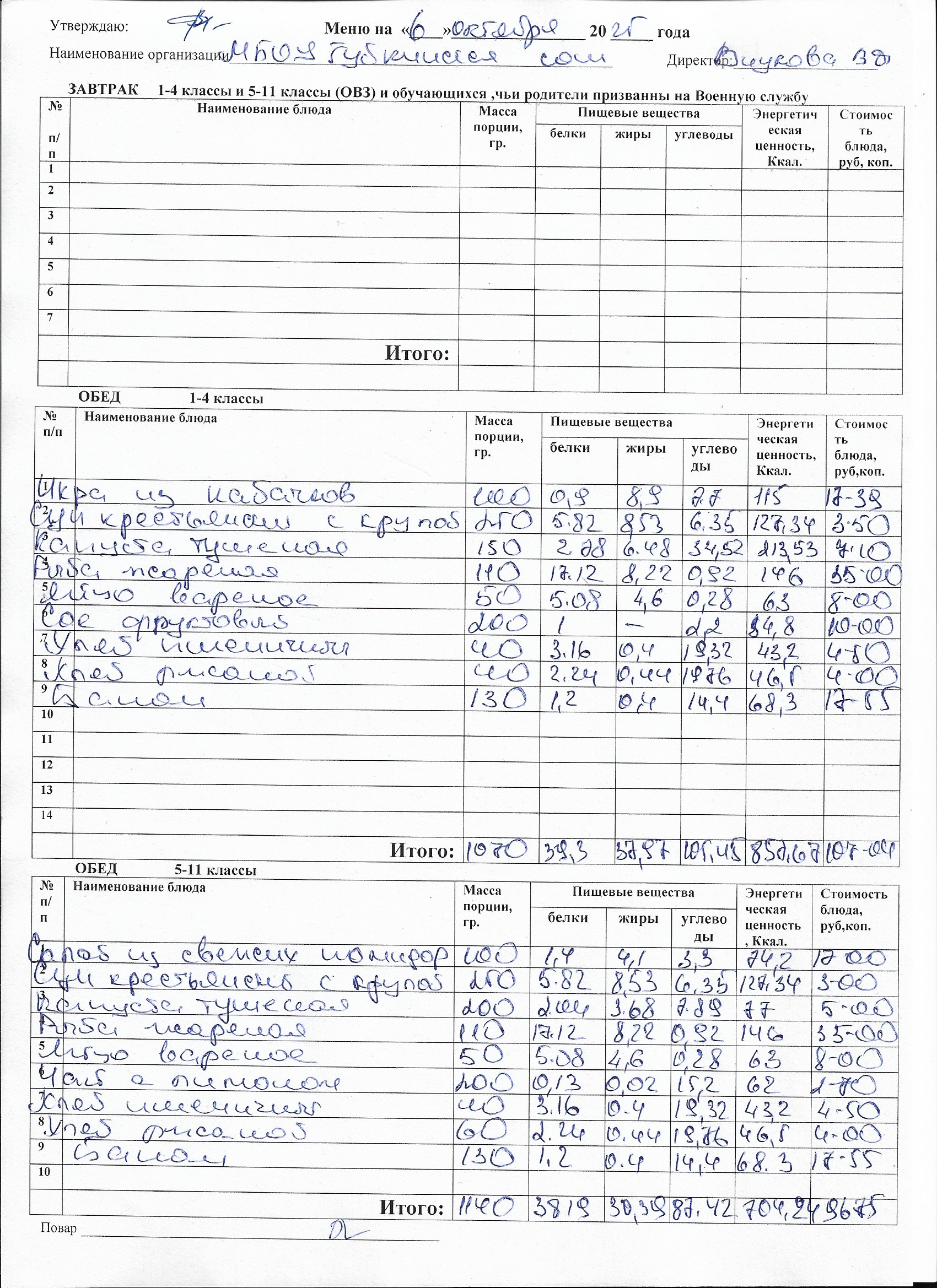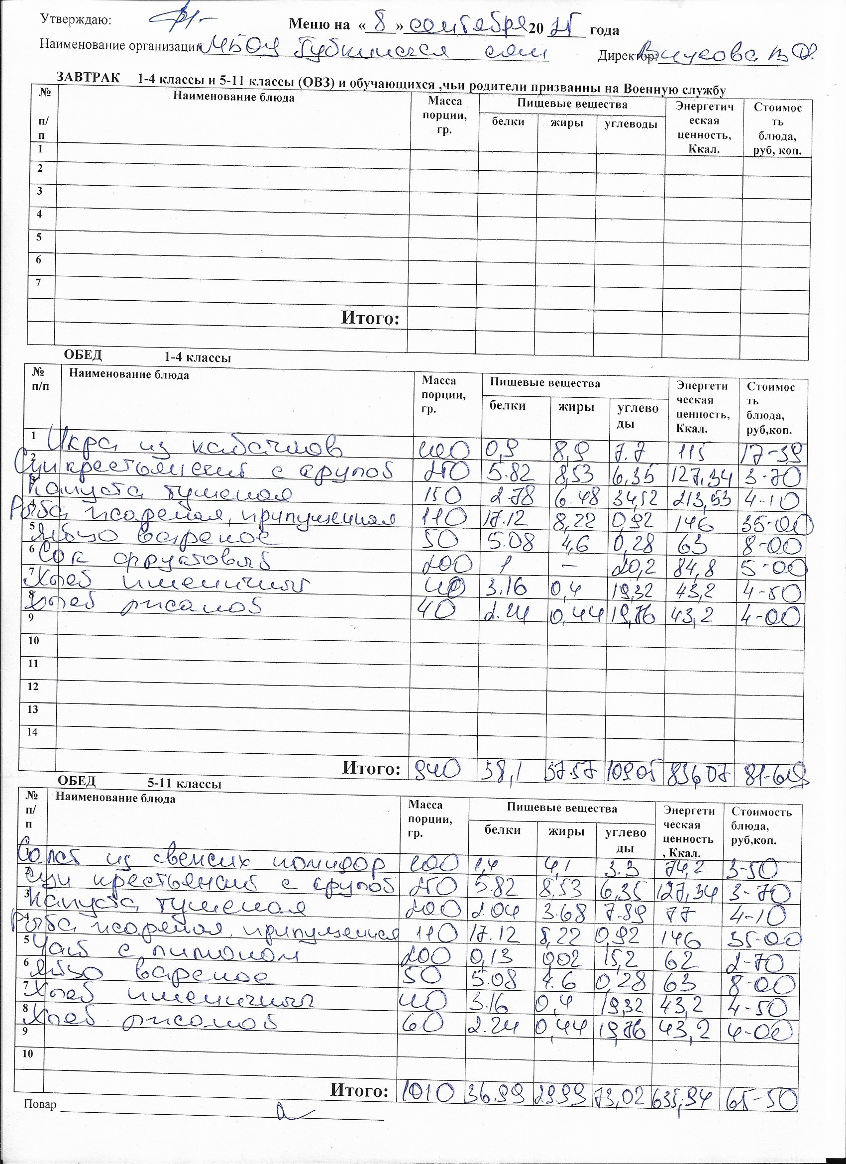 Меню на каждый день