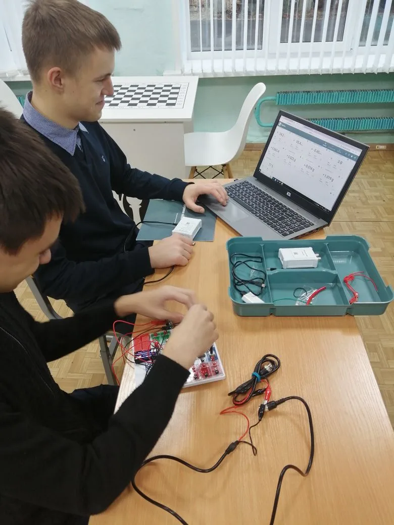На внеурочном занятии "Физика вокруг нас" учащиеся МБОУ "Губкинская сош" под руководством учителя физики Куркина С.Н. учащиеся выполняют лабораторную работу с программным обеспечением RELAB PRO 2.